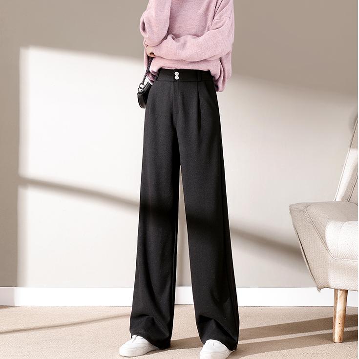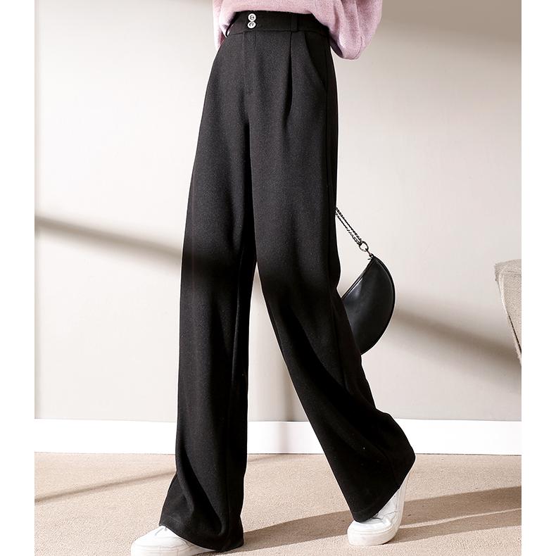Зимние женские шерстяные брюки, повседневные однотонные шерстяные женские широкие брюки, женские прямые длинные брюки с высокой талией в стиле OL, дропшиппинг