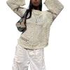 Женский укороченный топ Y2K, винтажный свободный рваный вязаный крючком пуловер, женский повседневный сказочный шикарный укороченный трикотаж