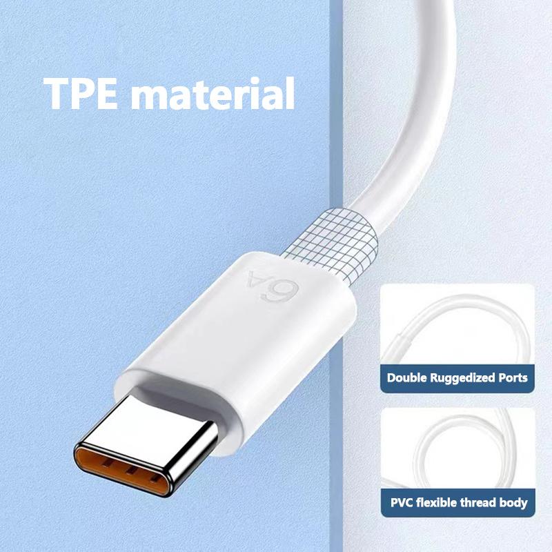Зарядный провод 66 Вт, двойной зарядный кабель для флэш-зарядки TYPE-C с оранжевым резиновым сердечником, кабель для передачи данных для сверхбыстрой зарядки 6 А
