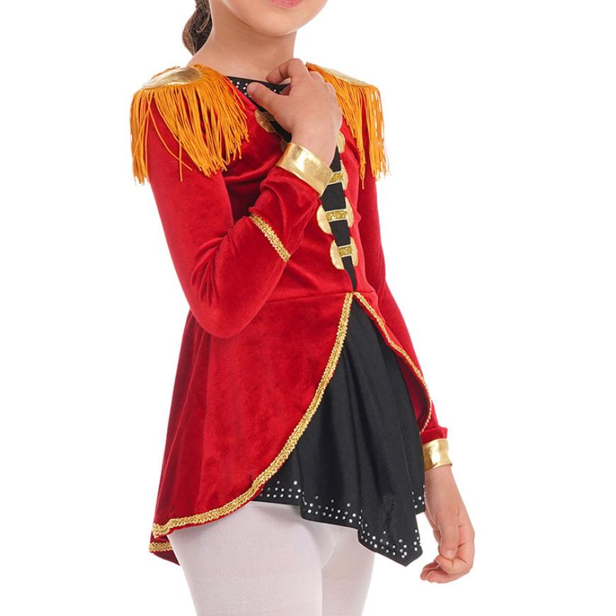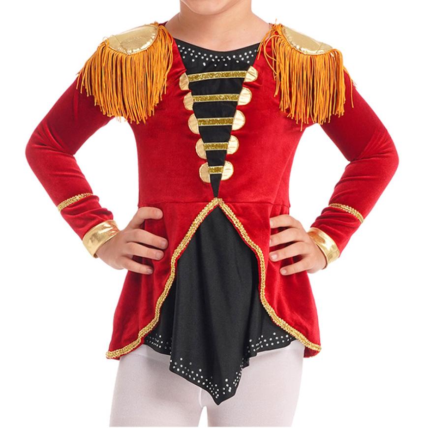 Красный детский цирковой карнавальный костюм для девочек, комбинезон с длинными рукавами и кистями, украшенный глубоким подолом, боди