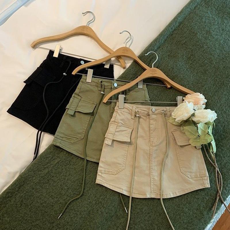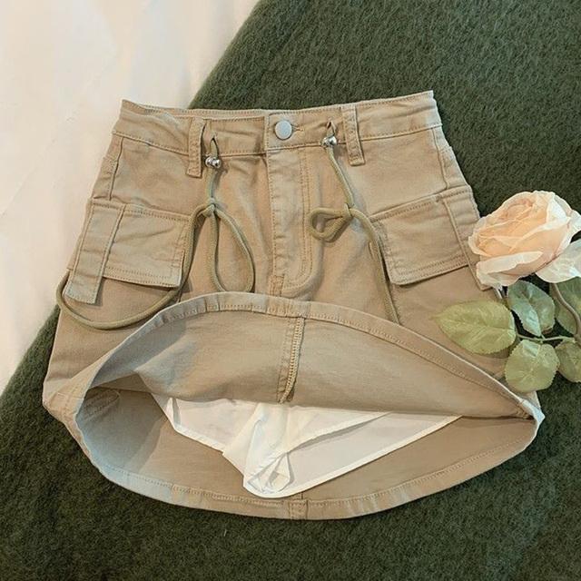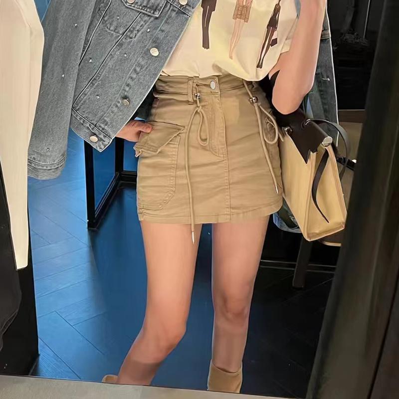 Мини-юбка с высокой талией на шнурке, женская уличная одежда, юбка-карго с большим карманом, женская модная короткая трапециевидная юбка Y2k Mujer