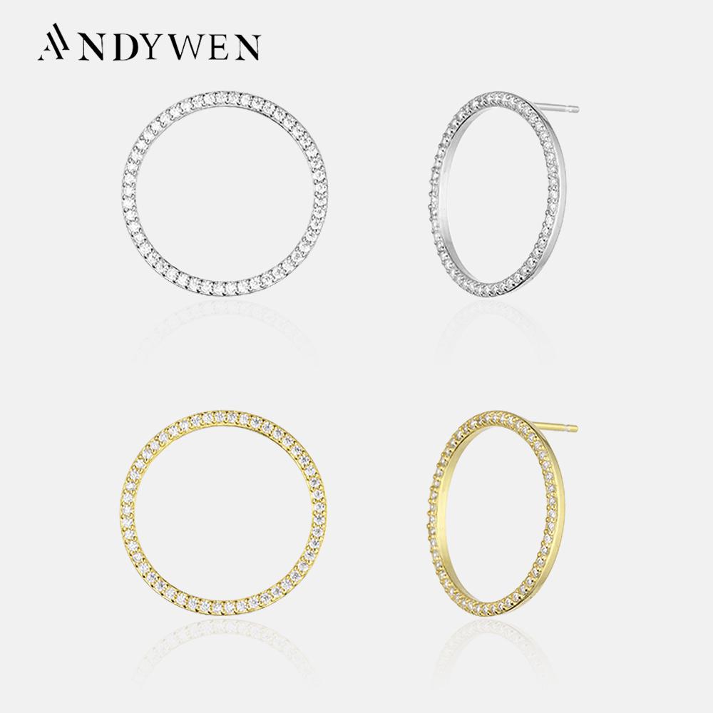 ANDYWEN стерлингового серебра 925 пробы, золото, большой круг, CZ Pave, серьги-гвоздики, клипсы, роскошные ювелирные изделия, круглые хрустальные женские клипсы, драгоценности — купить товар онлайн с бесплатной доставкой по всему миру!