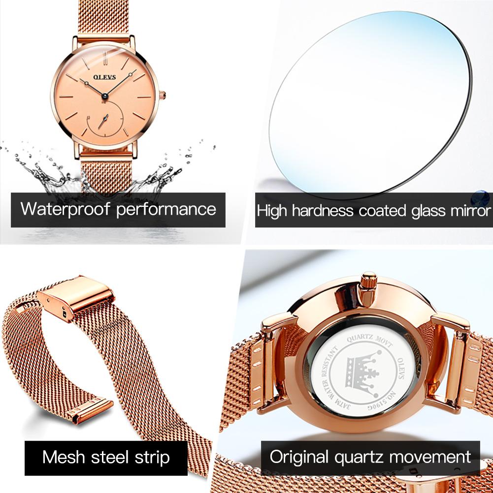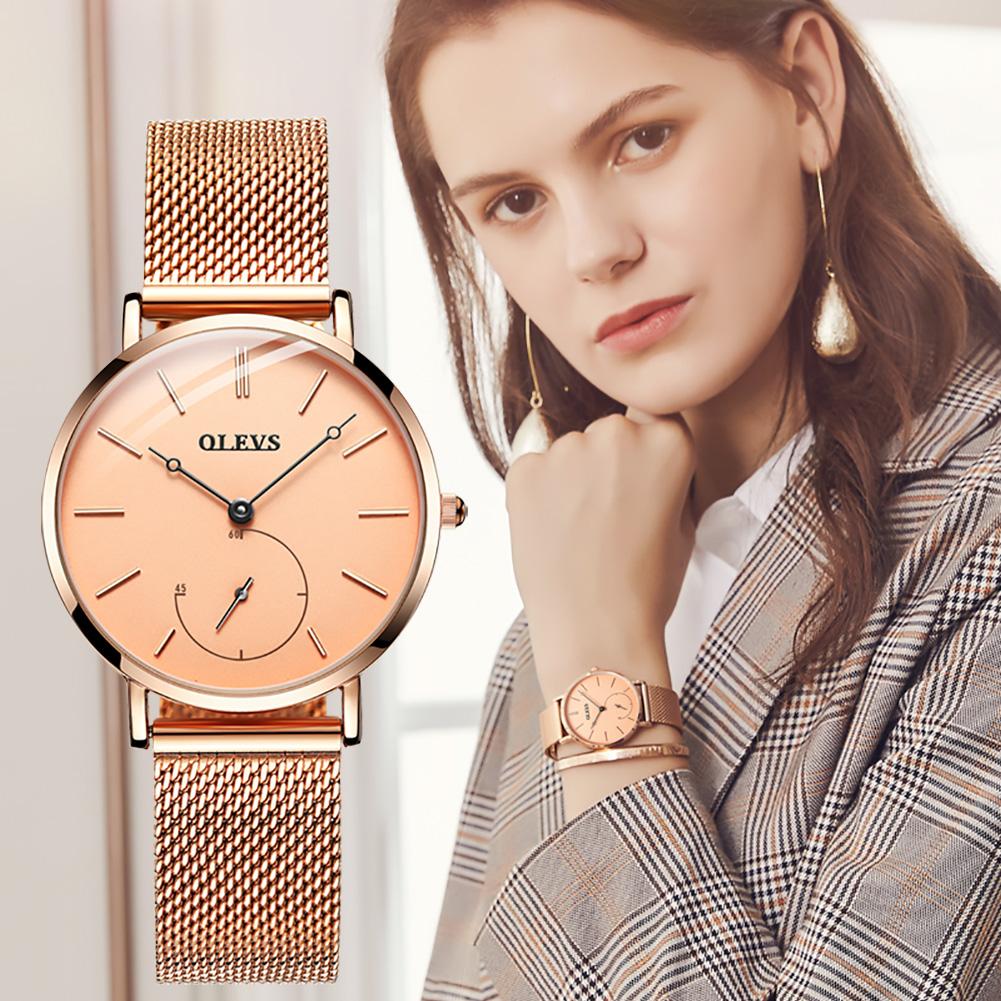 OLEVS Брендовые часы Кварцевые часы Нишевые тонкие независимые секундные водонепроницаемые женские часы Женские часы