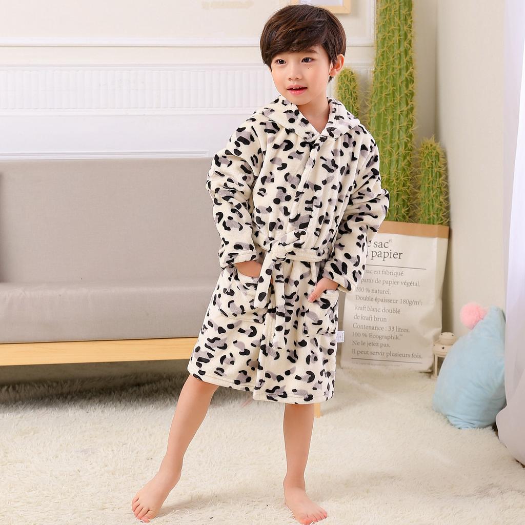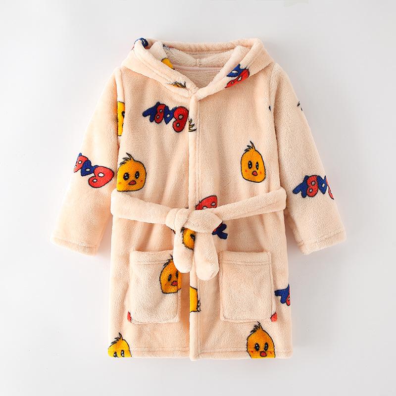 Детская ночная рубашка, весенне-зимняя детская домашняя одежда, фланелевой халат с капюшоном из мультфильма, пижамы для мальчиков и девочек