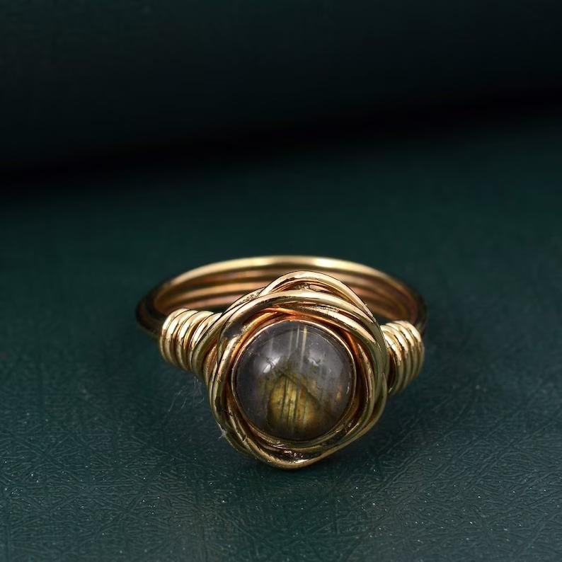 Кольцо с драгоценным камнем лабрадорит, женское кольцо из твердого серебра 925 пробы, кольцо из желтого золота, комплектное кольцо, подарочные ювелирные изделия