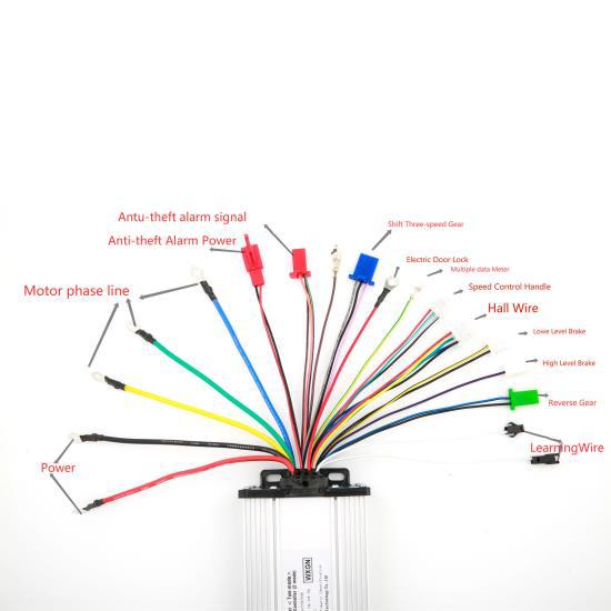 6. функции: источник питания, блок питания литий-ионный, электрический дверной замок, линия фазы двигателя, линия отверстий, ускорение линии, набор трехскоростных линий, тормозные линии низкого уровня, высокая тормозная линия, общая линия приборов, противоугонная сигнализация шнура питания, сигнальные линии противоугонной сигнализации, линии заднего хода, интеллектуальное распознавание от обучения.