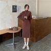 Вязаное платье-свитер с застежкой-молнией и лацканами, женское осенне-зимнее длинное шерстяное платье с высоким воротом, прямое французское платье с длинными рукавами, женское