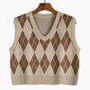 Корейский свитер, пуловер с ромбовидной сеткой, жилет с v-образным вырезом для женщин, весенне-осенний вязаный свитер, короткий жилет, женский пуловер