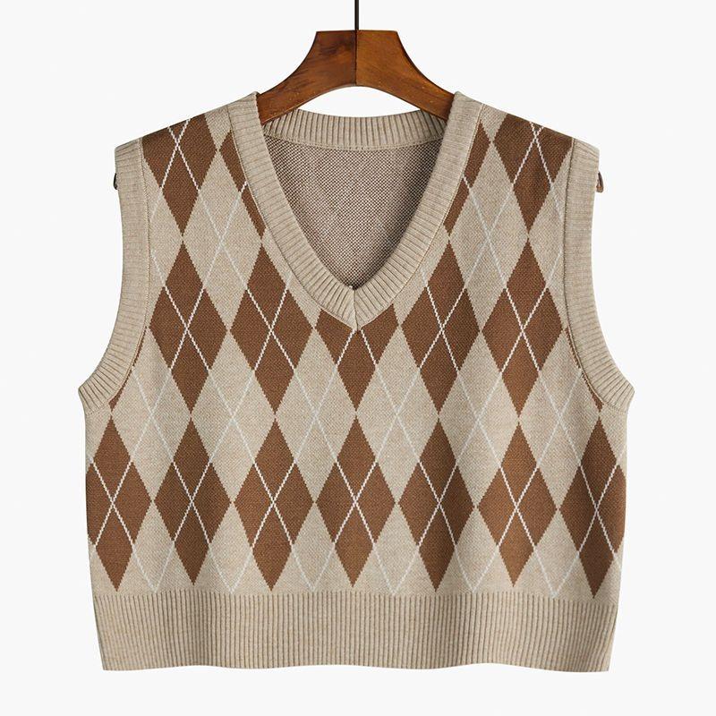 Корейский свитер, пуловер с ромбовидной сеткой, жилет с v-образным вырезом для женщин, весенне-осенний вязаный свитер, короткий жилет, женский пуловер — купить товар онлайн с бесплатной доставкой по всему миру!