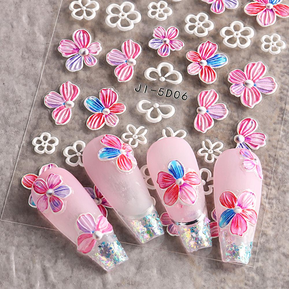 3D-наклейка для укрепления ногтей, летняя свежая наклейка для ногтей с тиснением в виде лепестков камелии