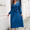 Женское осенне-зимнее темпераментное плиссированное платье макси с V-образным вырезом и длинными рукавами на шнуровке, S-XL