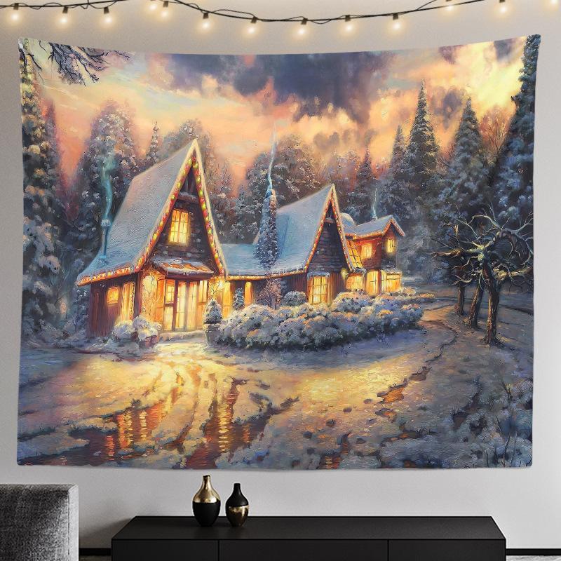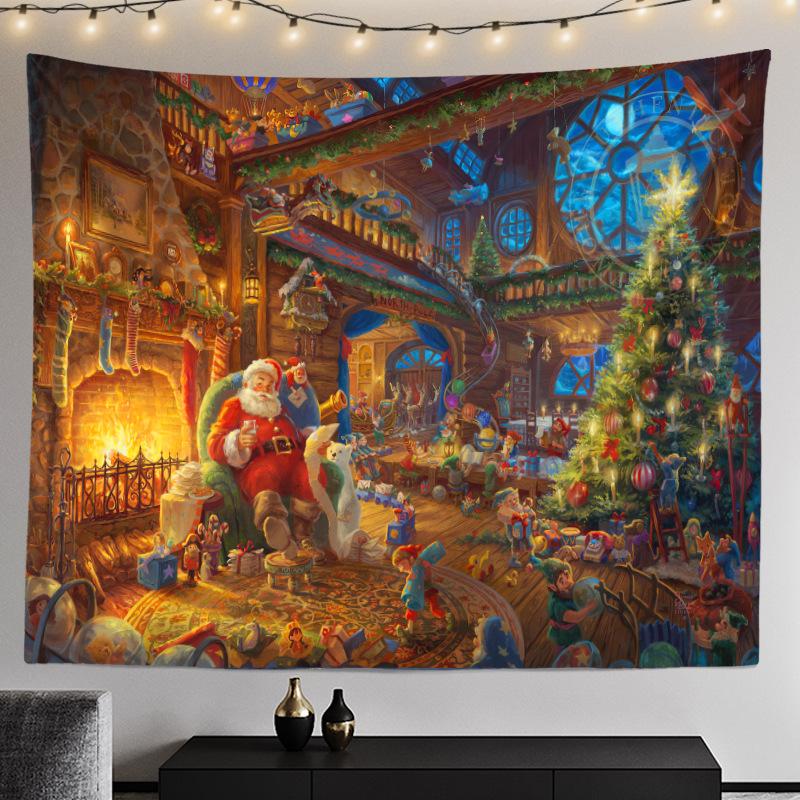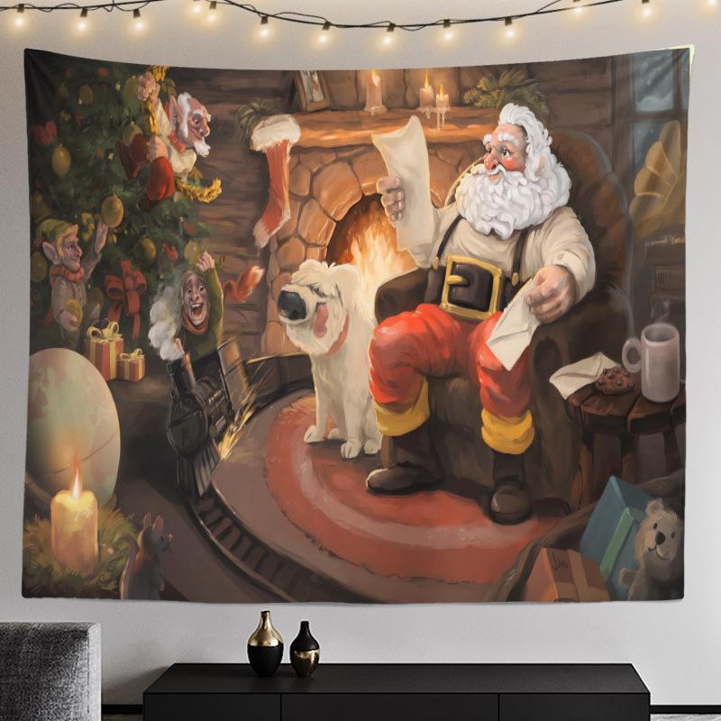 Трансграничная скандинавская оптовая продажа, спальня, дом, камин, фоновая ткань, скандинавское Рождество, Санта-Клаус