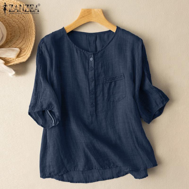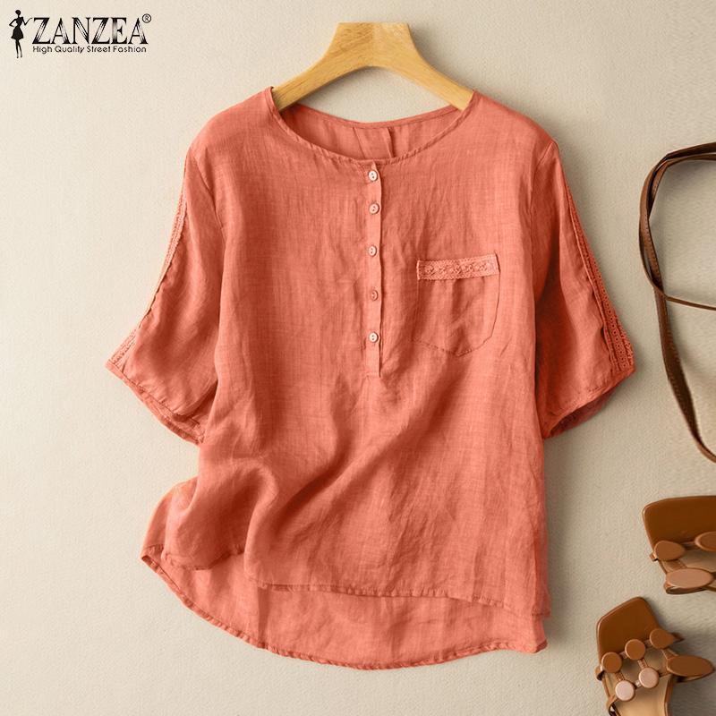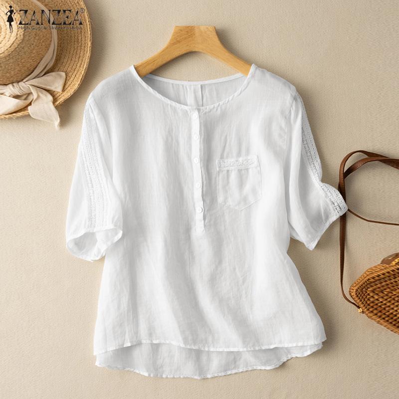 ZANZEA Женская летняя повседневная блузка с коротким рукавом и круглым вырезом