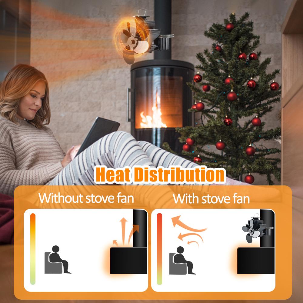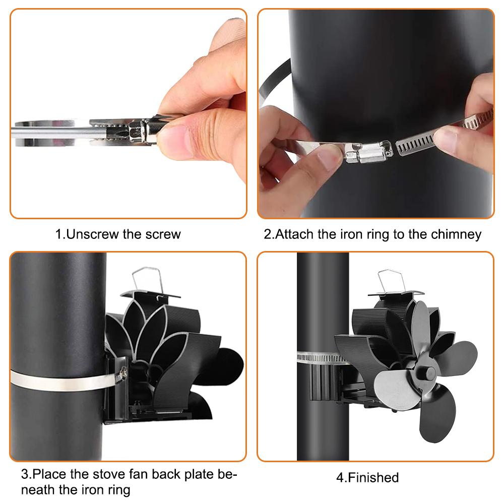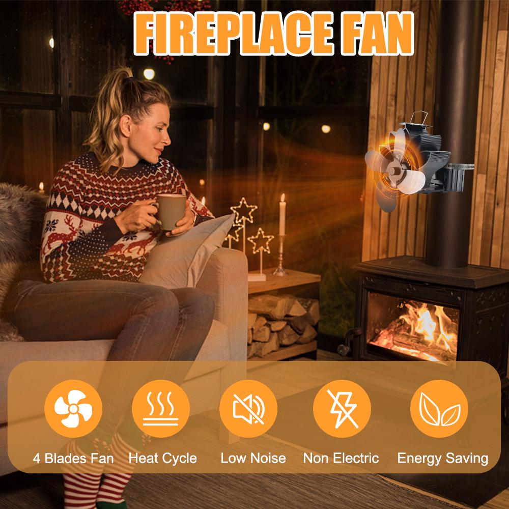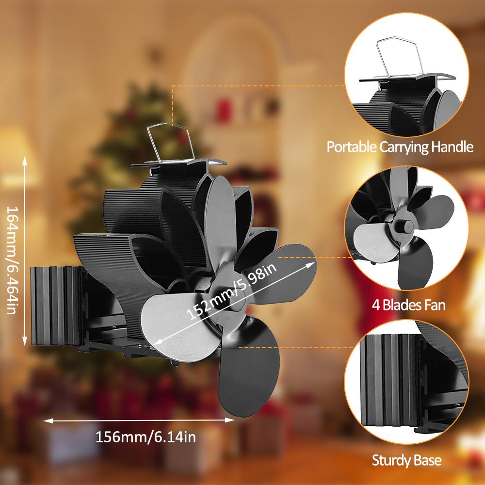 Дровяная печь Вентилятор Неэлектрический с тепловым приводом Распределение тепла в форме лотоса Бесшумный дымоход с 4 лопастями