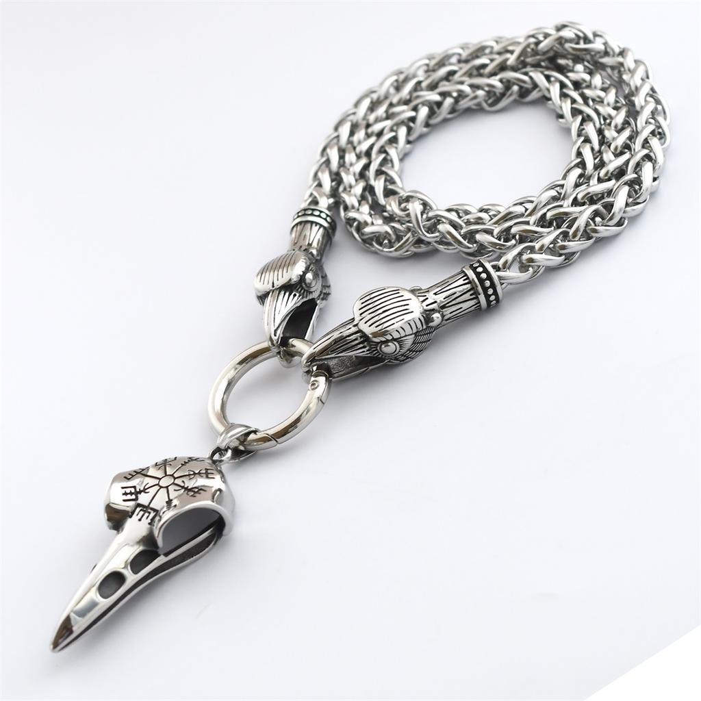 1 шт., ожерелье-цепочка с головой вороны викингов и дракона-подвеска с черепом из скандинавской мифологии и компасом викингов-мужские ювелирные изделия-амулеты