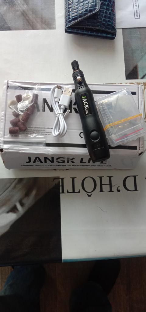 Хорошее маломощное устройство для выполнения отрезных, фрезерных, сверлильных и шлифовальных операций при обработке небольших объёмов материалов в быту. Полагаю, что вполне может пригодится для маникюрно-педикюрной обработки в соответствующих салонах. Разрядился - поставил на зарядку, вставив в корпус с торцевой стороны микро юэсби шнур. Замигали красненькие - идет зарядка. Загорелся зелёненький - зарядился, можно отключать. Включается нажатием: три скорости вращения - минимальная, средняя, максимальная и выкл. Набор цанговых зажимов позволяет зажимать в патрон различные по диаметру инструменты. Инструменты и мелкий инвентарь лежат в пластмассовом прозрачном футлярчике. Хранится всё в чехле. Как-то удобненько при транспортировке. Вполне удачное приобретение.