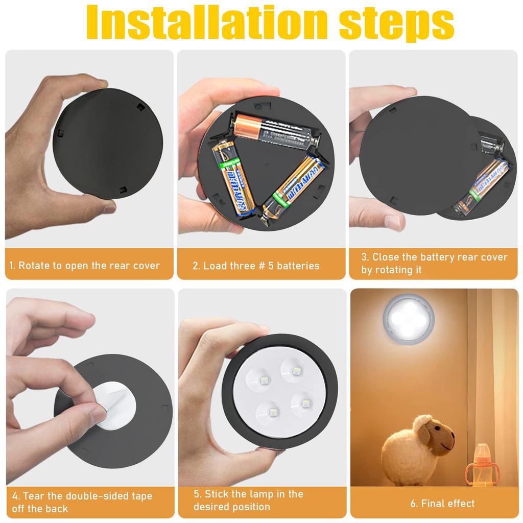 Беспроводная подсветка под шкафом Кнопочный светильник с шайбой на батарейках