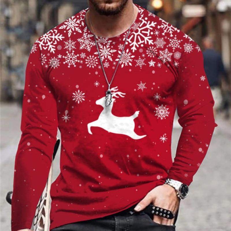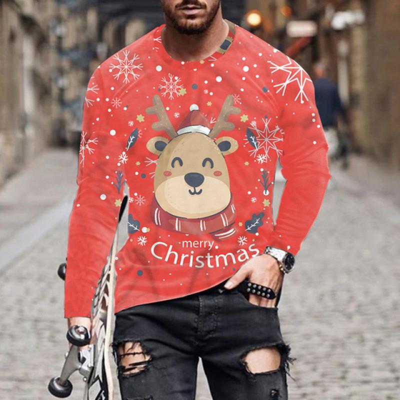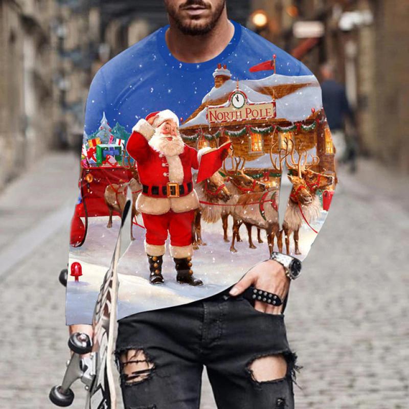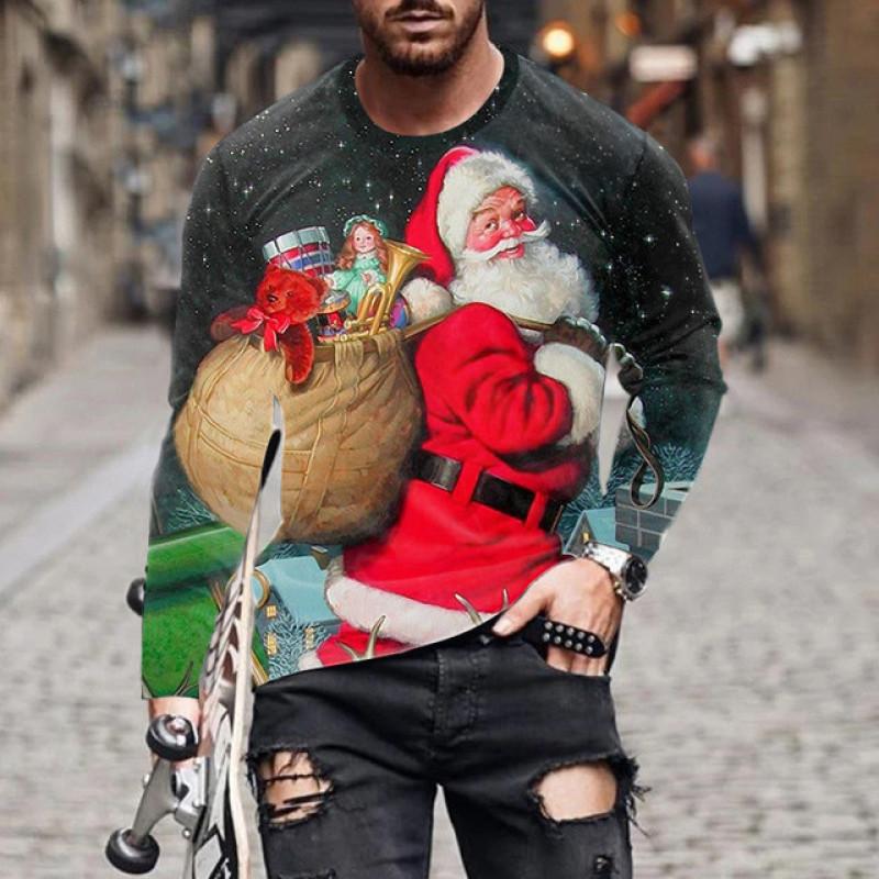 Летняя мужская футболка с 3D принтом в рождественском стиле, повседневная футболка большого размера с длинными рукавами, модный пуловер, трендовая мужская одежда