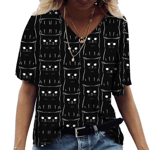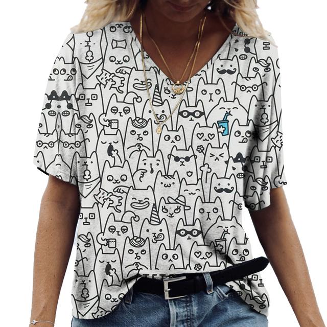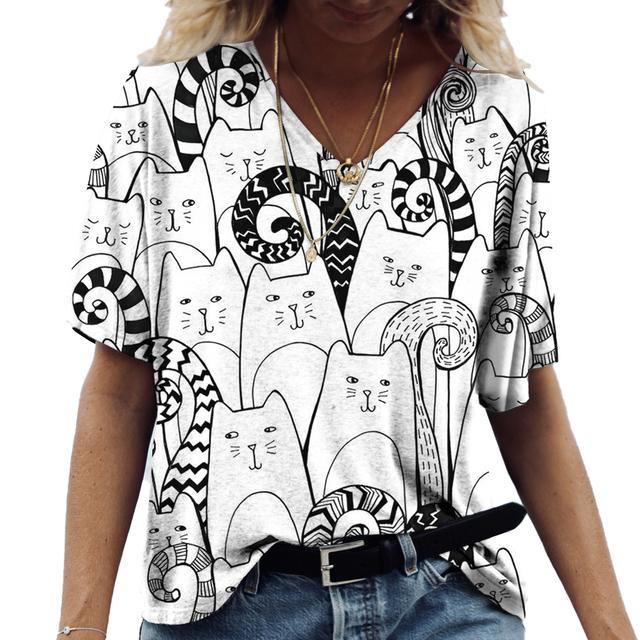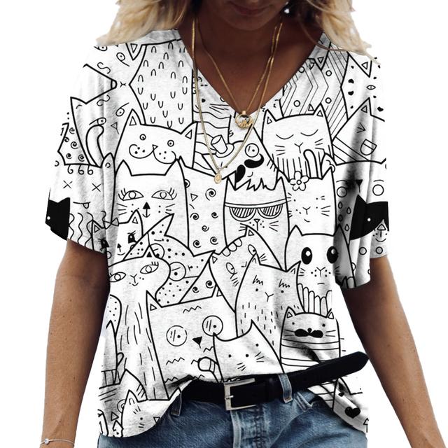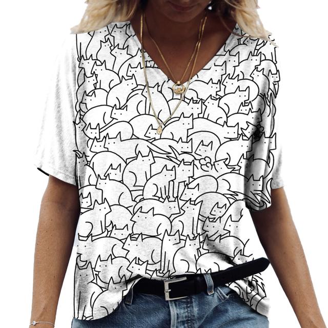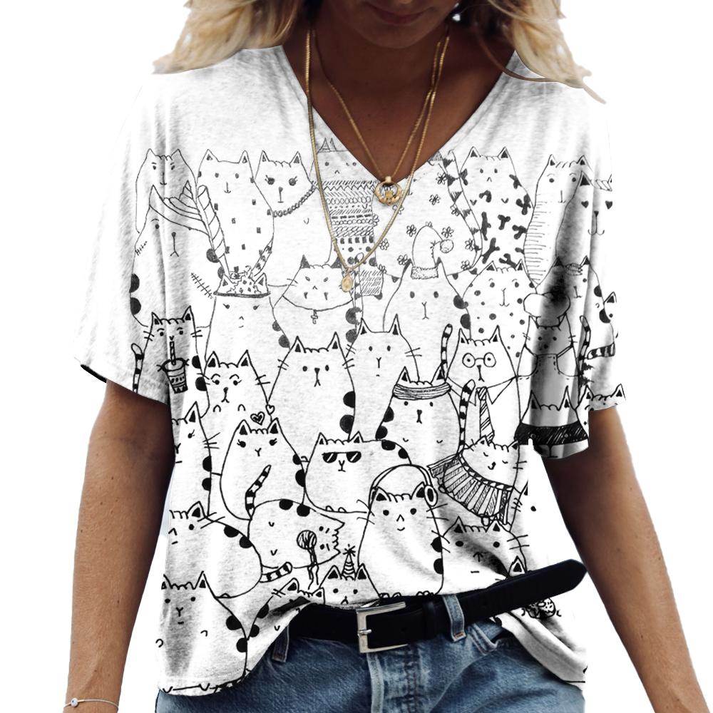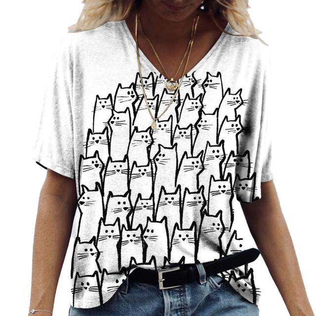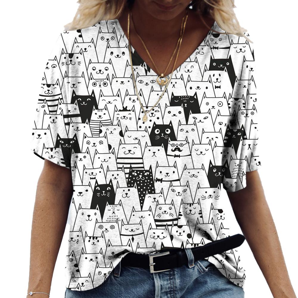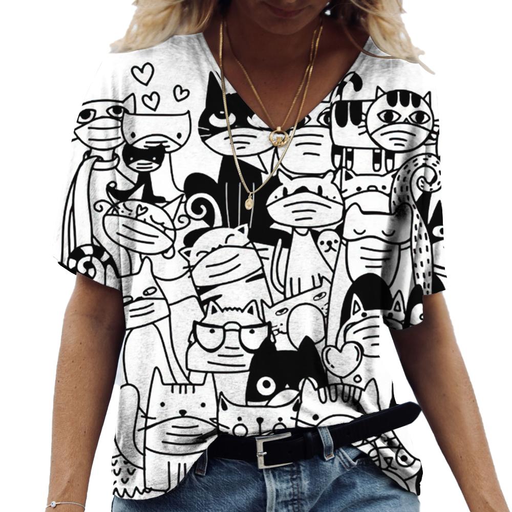Женская футболка с v-образным вырезом и принтом кота, женский топ высокого качества, повседневная повседневная одежда, забавная рубашка большого размера, спортивная с коротким рукавом