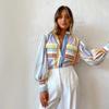 Полосатая рубашка с рукавами-фонариками, женская праздничная мода, однобортный топ, свободные рубашки, женская летняя пляжная футболка с карманами, новинка 2023 г.