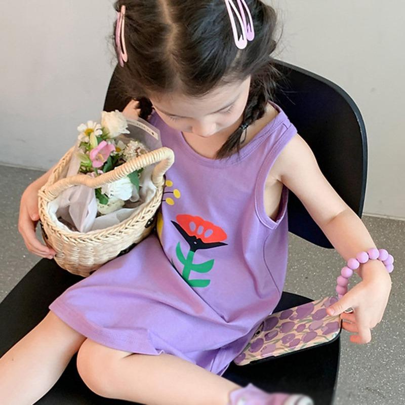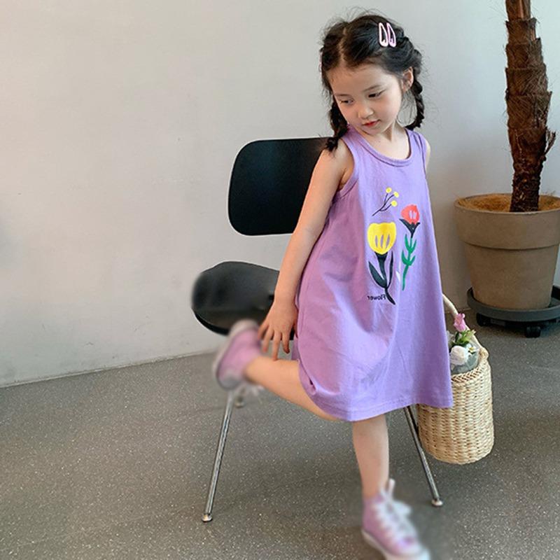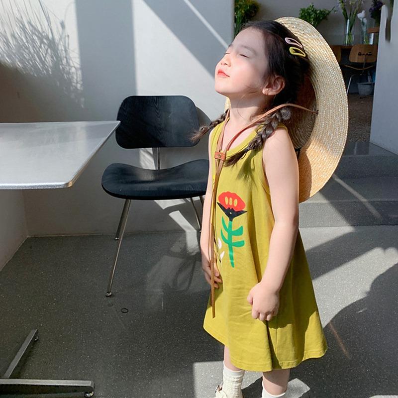 Лето, ранняя осень, свободное платье без рукавов для маленьких девочек, шикарное уличное повседневное платье с цветочным принтом