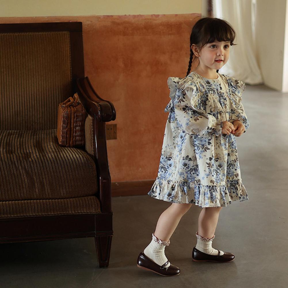 Платье с летающими рукавами для девочек, милая детская юбка, платье принцессы в стиле ретро