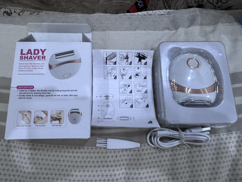 Очень классная штука. Провела по ноге мужа, он даже не заметил, но полоса лысая осталась. Мне пока нечего брить… в руке очень приятно держать, в наборе щеточка, и провод. Почему я подумала что заряд тип-с? Можно мыть под водой, в общем пока положительные эмоции. Спасибо!!!!