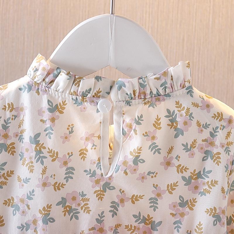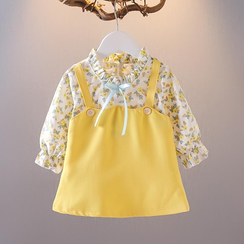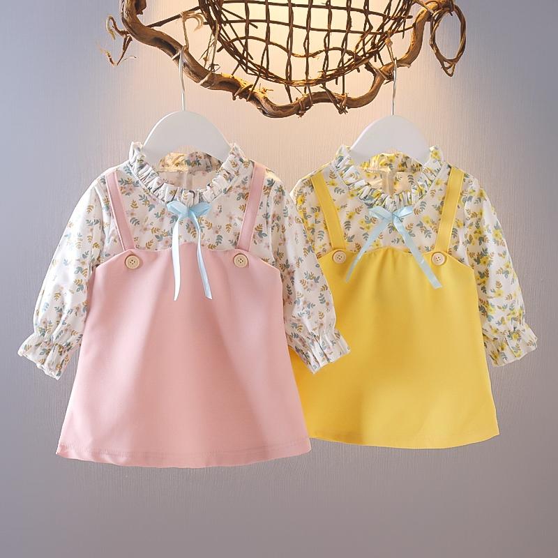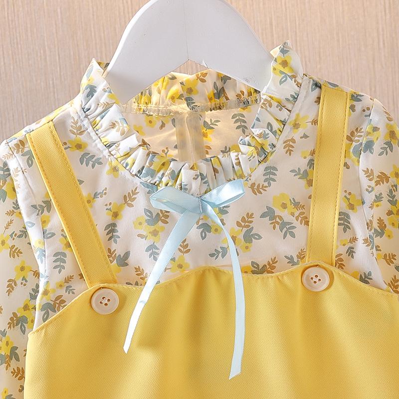 Осеннее платье с длинными рукавами для маленьких девочек, платье с цветочным воротником-стойкой, платье с двумя подтяжками, детское платье принцессы, костюм, детская элегантная юбка
