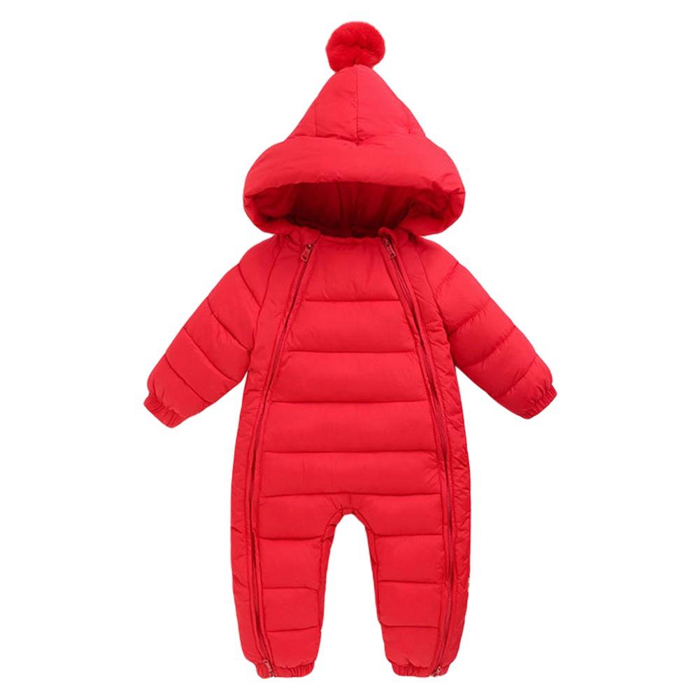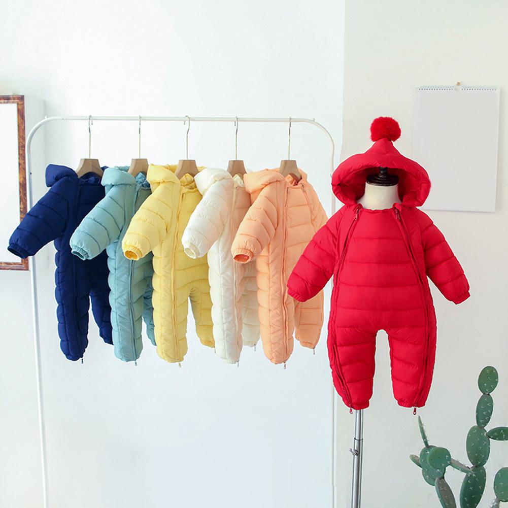 Зимний зимний комбинезон для маленьких мальчиков и девочек, комбинезон с помпоном, верхняя одежда с капюшоном на молнии, цельный комбинезон для малышей, пуховое пальто, боди, От 0 до 18 месяцев