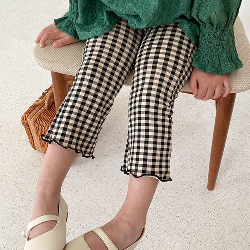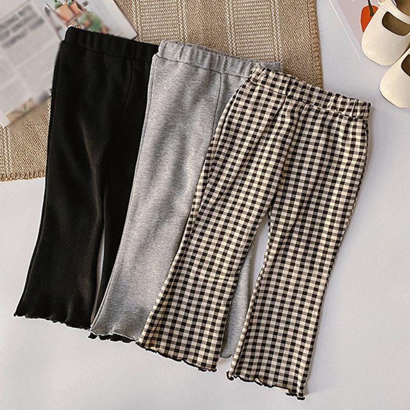 Одежда для маленьких девочек, клетчатые эластичные вязаные расклешенные брюки, облегающие брюки для девочек, детские брюки от 1 до 9 лет