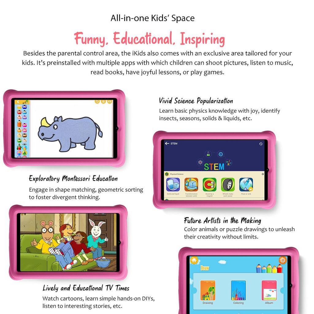 Помимо зоны родительского контроля, в iKids также имеется эксклюзивная зона, специально предназначенная для ваших детей.. В него предустановлено несколько приложений, с помощью которых дети могут фотографировать, слушать музыку, читать книги, получать удовольствие от уроков или играть в игры.