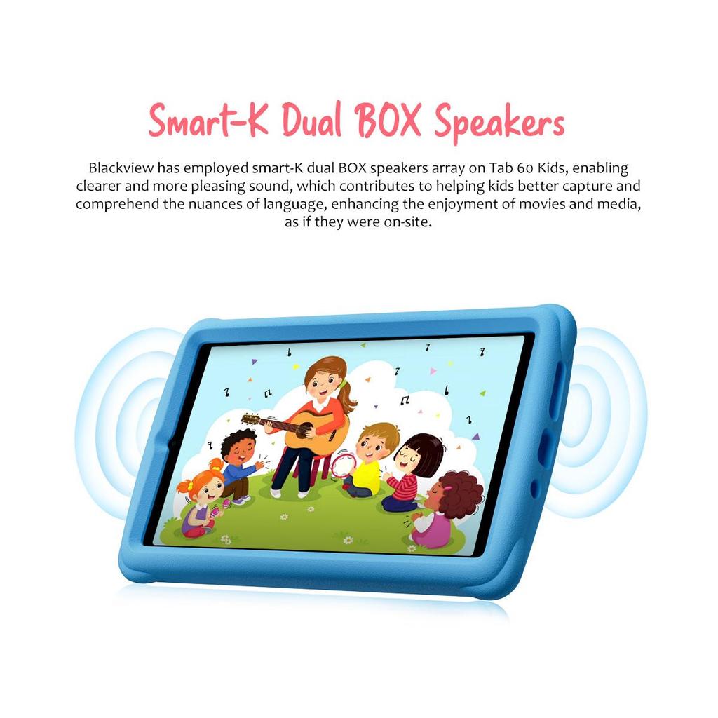 Компания Blackview применила в Tab 60 Kids массив динамиков Smart-K Dual BOX, обеспечивающий более чистый и приятный звук, что помогает детям лучше улавливать и понимать нюансы речи, повышая удовольствие от фильмов и мультимедиа, как если бы они были в сети. сайт.