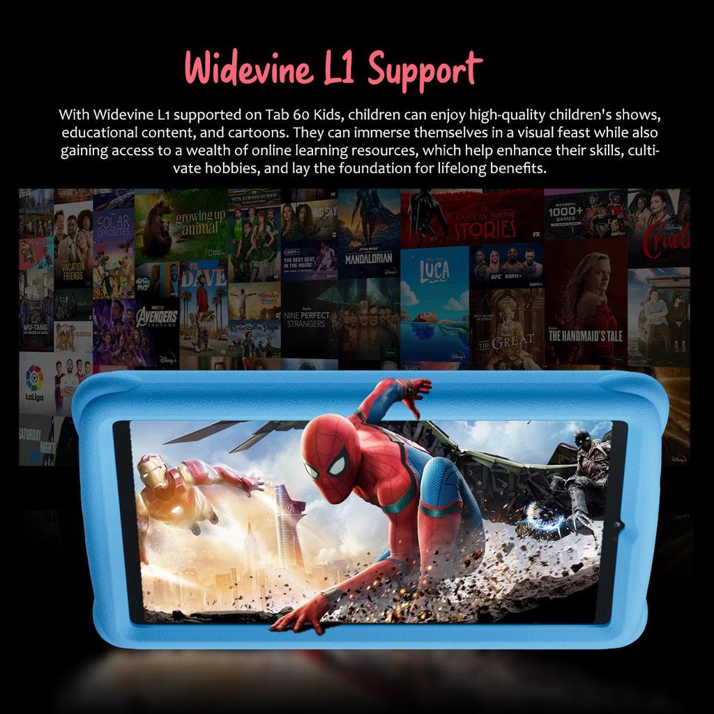 Благодаря поддержке Widevine L1 на Tab 60 Kids дети могут наслаждаться высококачественными детскими шоу, образовательным контентом и мультфильмами.. Они могут погрузиться в визуальный праздник, а также получить доступ к множеству ресурсов онлайн-обучения, которые помогают совершенствовать их навыки, развивать хобби и закладывать основу для пожизненных преимуществ.