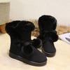 Теплые женские зимние сапоги на меху, милая замшевая зимняя обувь, сапоги до середины икры с меховыми шариками, женские модные ботинки, нескользящие повседневные зимние ботинки