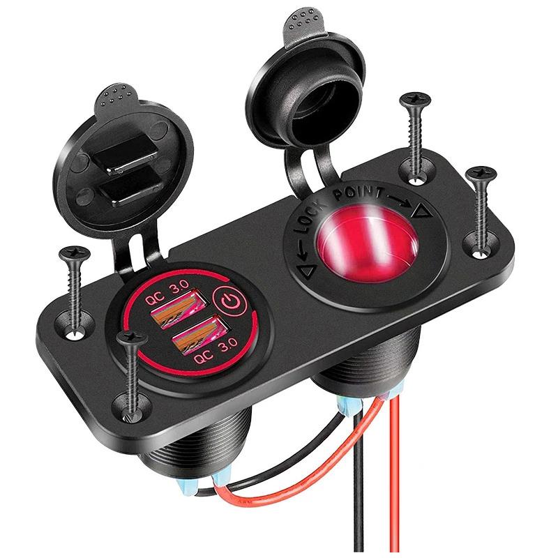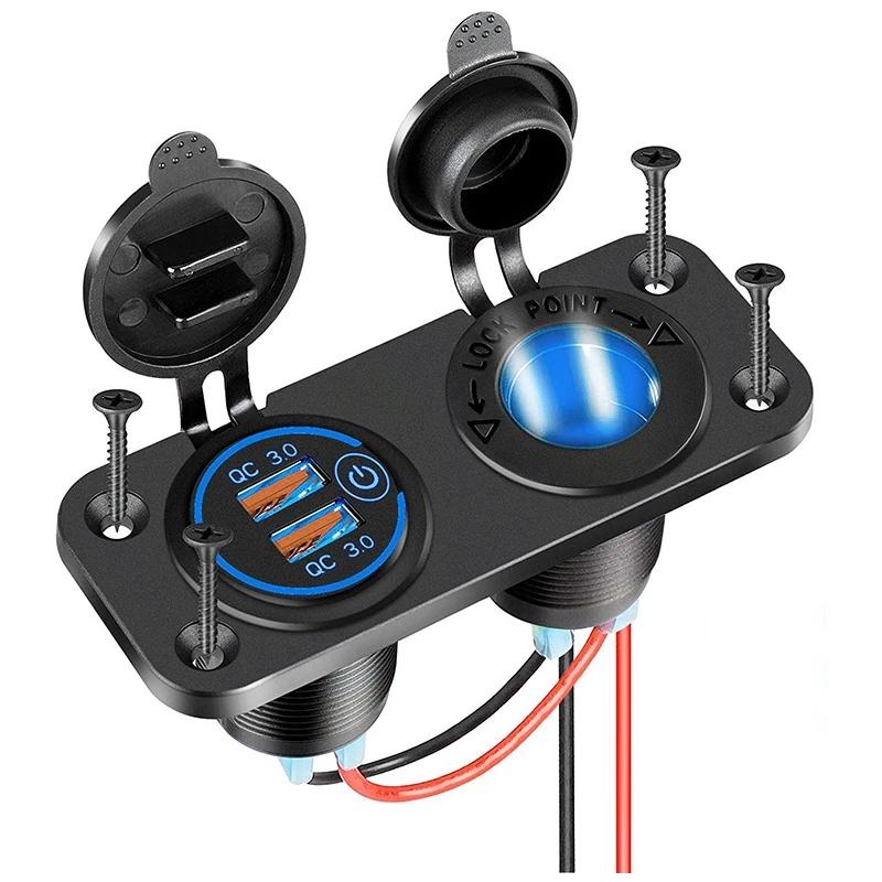 Панель 2 в 1 QC 3.0 с двумя светодиодными портами USB, автомобильное зарядное устройство с сенсорным переключателем и розеткой для автомобиля, мотоцикла, лодки, квадроцикла