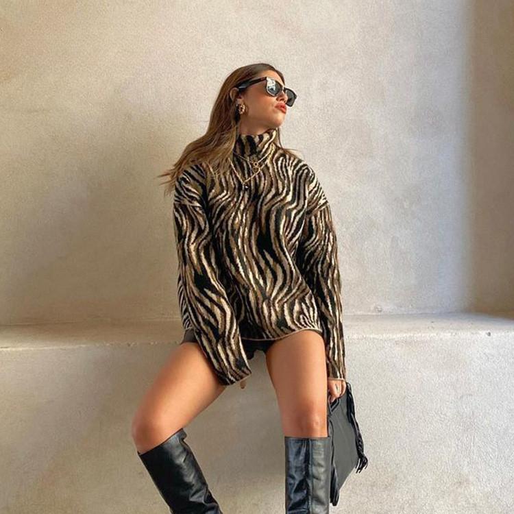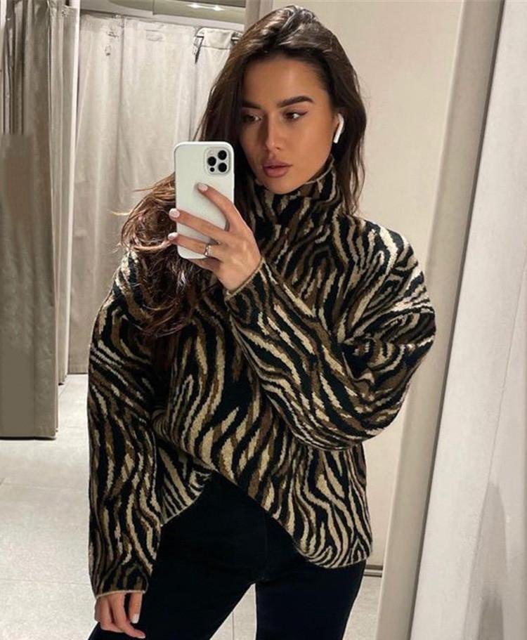 Женская уличная одежда, жаккардовый свитер с животным узором, женский свободный вязаный пуловер, топы, женский