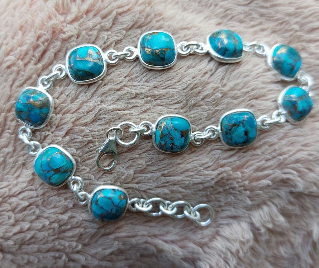 Браслет ручной работы из стерлингового серебра 925 пробы с синим медным бирюзовым драгоценным камнем. Массивные ювелирные изделия. — купить товар онлайн с бесплатной доставкой по всему миру!