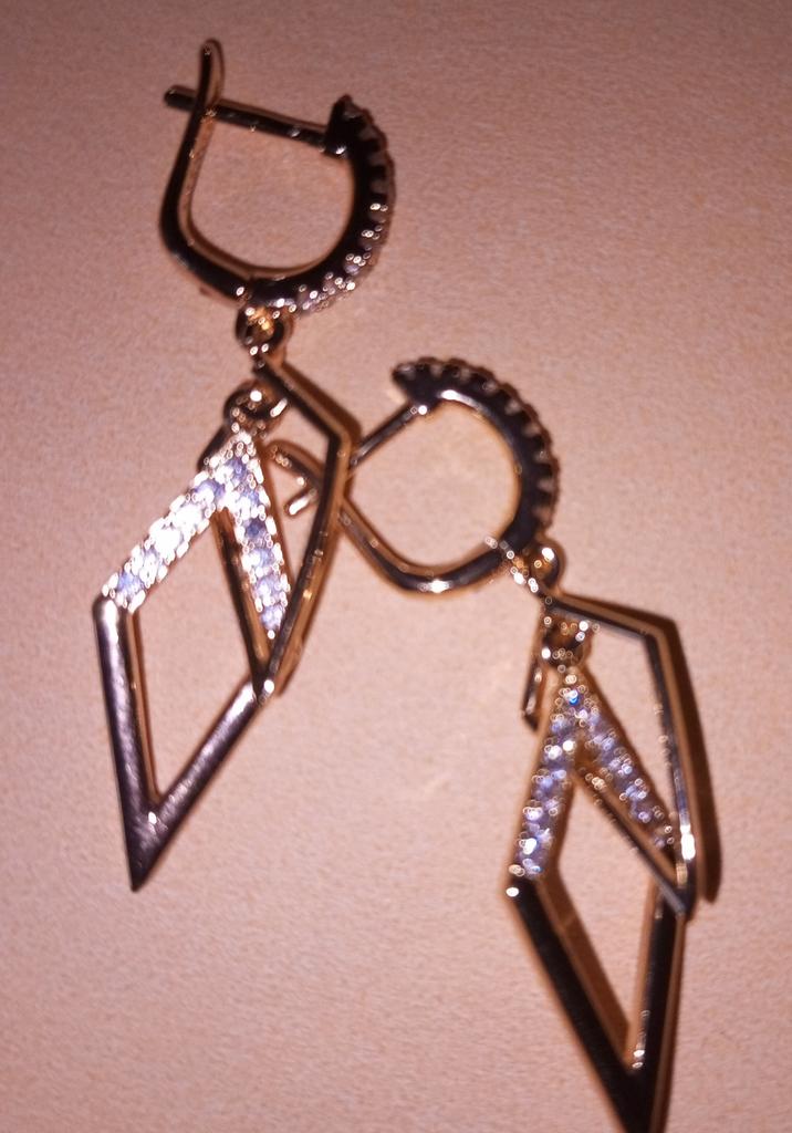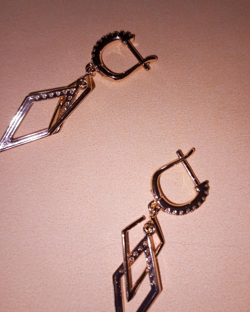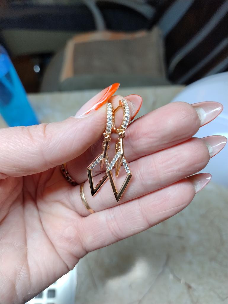 Очень интересный дизайн. Красивые, на ушах сидят хорошо. Такие элегантные. Как золотые. Не отличить. Всех благодарю и продаца иджум