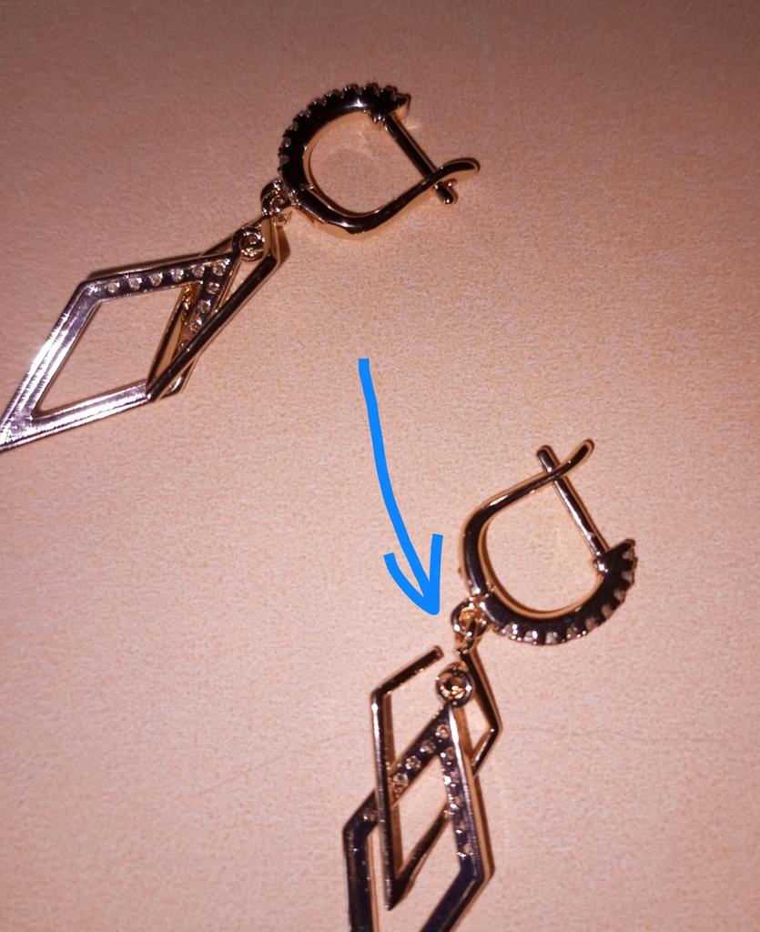 Хорошенькие, смотрятся стильно, лёгкие, замки рабочие. Серьги смотрятся как золотые при движении ощущаются, так как ударяются и издают шум. Мне одна серьга пришла повреждена(фото 3), ещё она немного согнута, но это почти не заметно... недорогая бижутерия 💖
