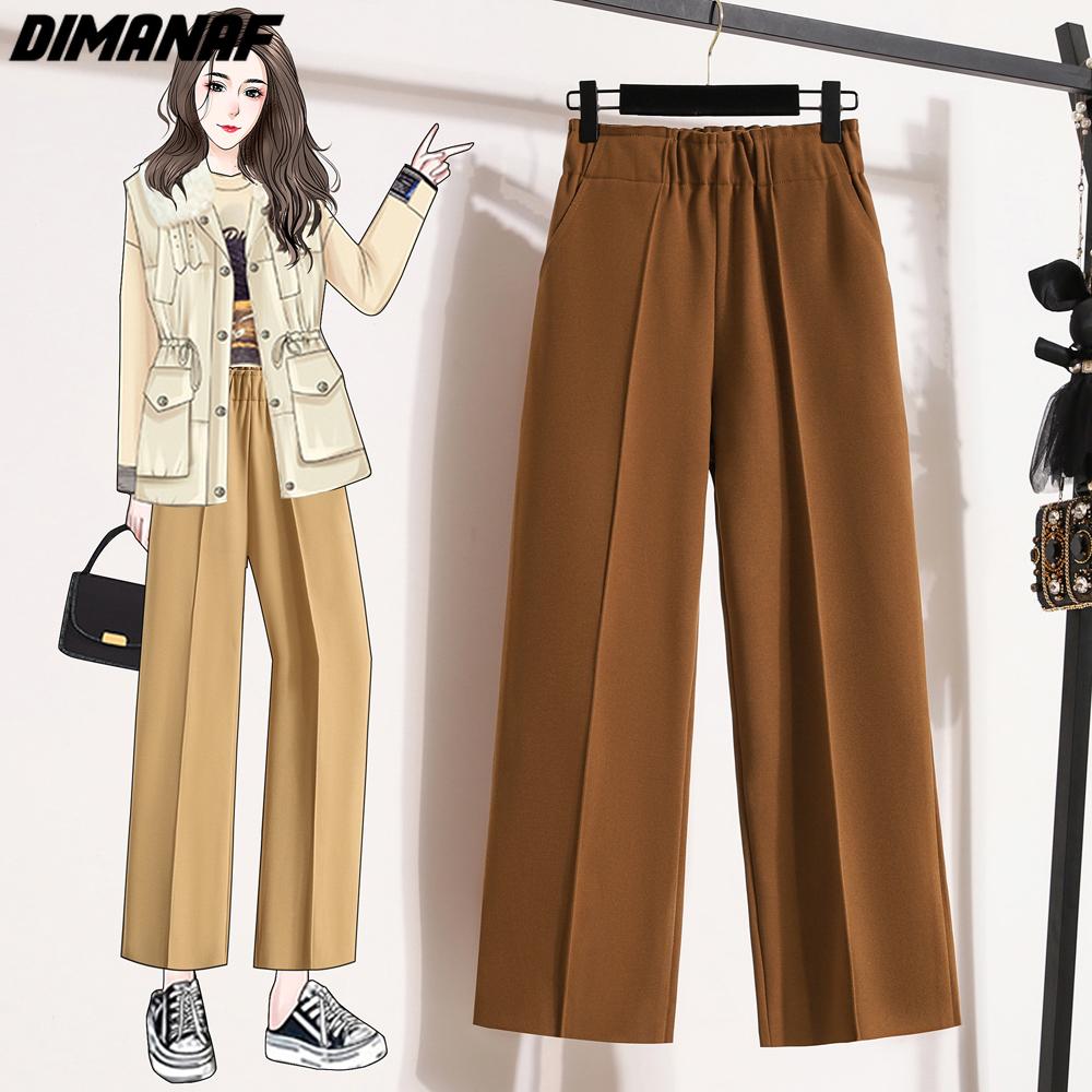 DIMANAF Большие размеры, зимние женские длинные брюки с эластичной резинкой на талии, свободные повседневные широкие брюки, плотные хлопковые шерстяные брюки, брюки