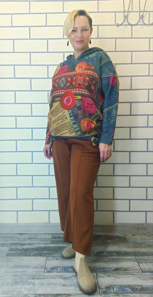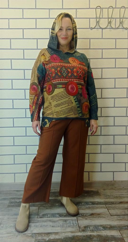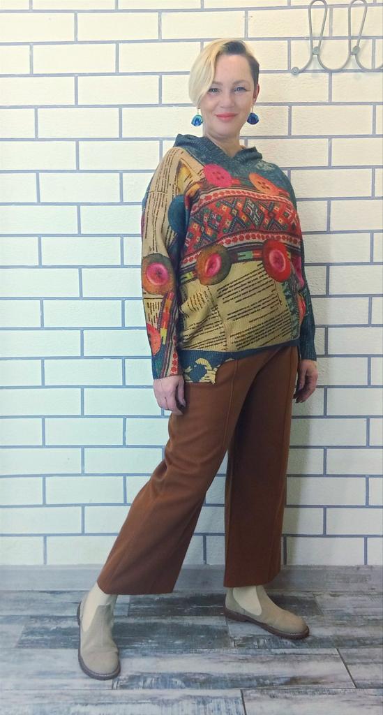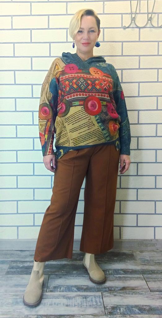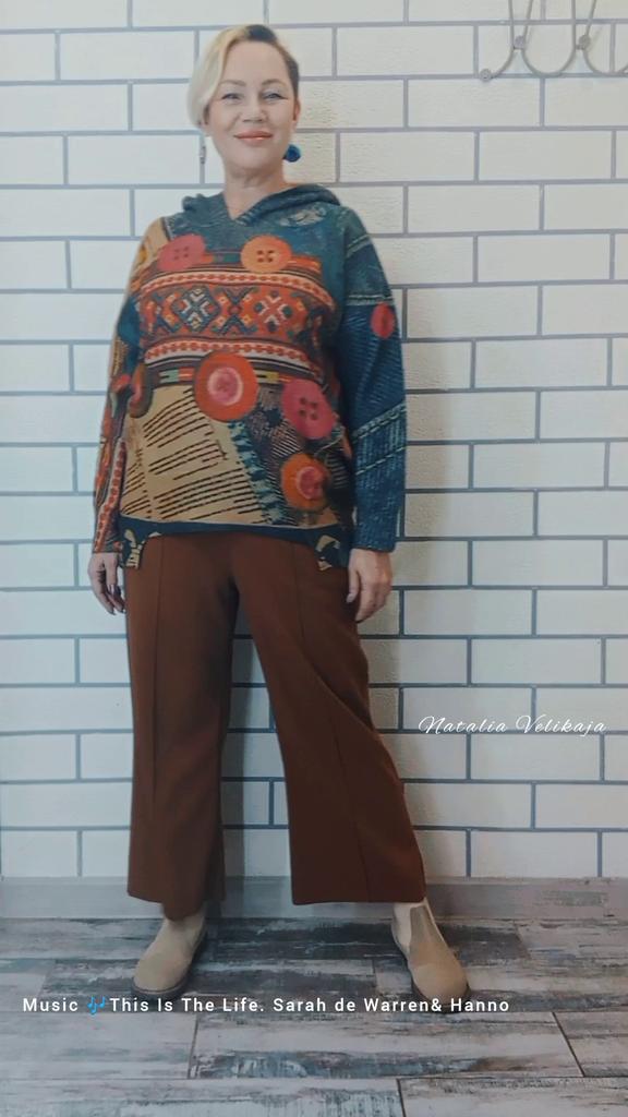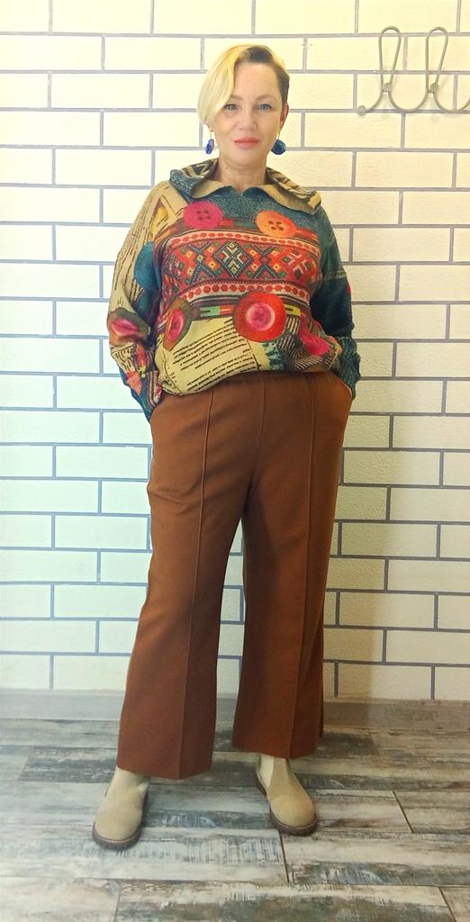 Теплые брюки в цвете терракот 📌Четыре цвета на выбор (мой называется коричневый). Размеры s-5xl. Мои параметры: рост 167, 100-87-102. На мне размер 3 XL. Я обожаю укороченные брюки, других у меня нет). Но! Если брюки заужены к низу. Эти брюки прямые. Широкие. И на мой рост короткие. Поэтому, дамам моего роста, и выше ростом, от покупки рекомендую воздержаться. А вот дамам ростом 160 см, или меньше, очень нужно присмотреться, потому что брюки шикарные! 📌Ткань шелковистая, нежная, смотрится дорого. Она добротная, с изнанки плотная. Эти брюки годятся на холодную погоду. Пошив фабричный. 📌Обращаю ваше внимание, что края пояса, карманов и низ необработаны, просто обрезаны. На талии широкая резинка, и она не тугая. Шлевок для ремня нет. И, несмотря на то, что мне нравится, как сели брюки в бедрах, с талии при ходьбе брюки слезают, и стремятся вниз. Поэтому: или брать на размер меньше, или подпороть изнутри штаны в талии, и подтянуть резинку. 📐Замеры ОТ 80-106 ОБ 118 Высота посадки 33 Длина внутреннего шва 61 Длина 95 Ширина брючины внизу 58 Ширина брючины в районе бедра (полуобхват) 35