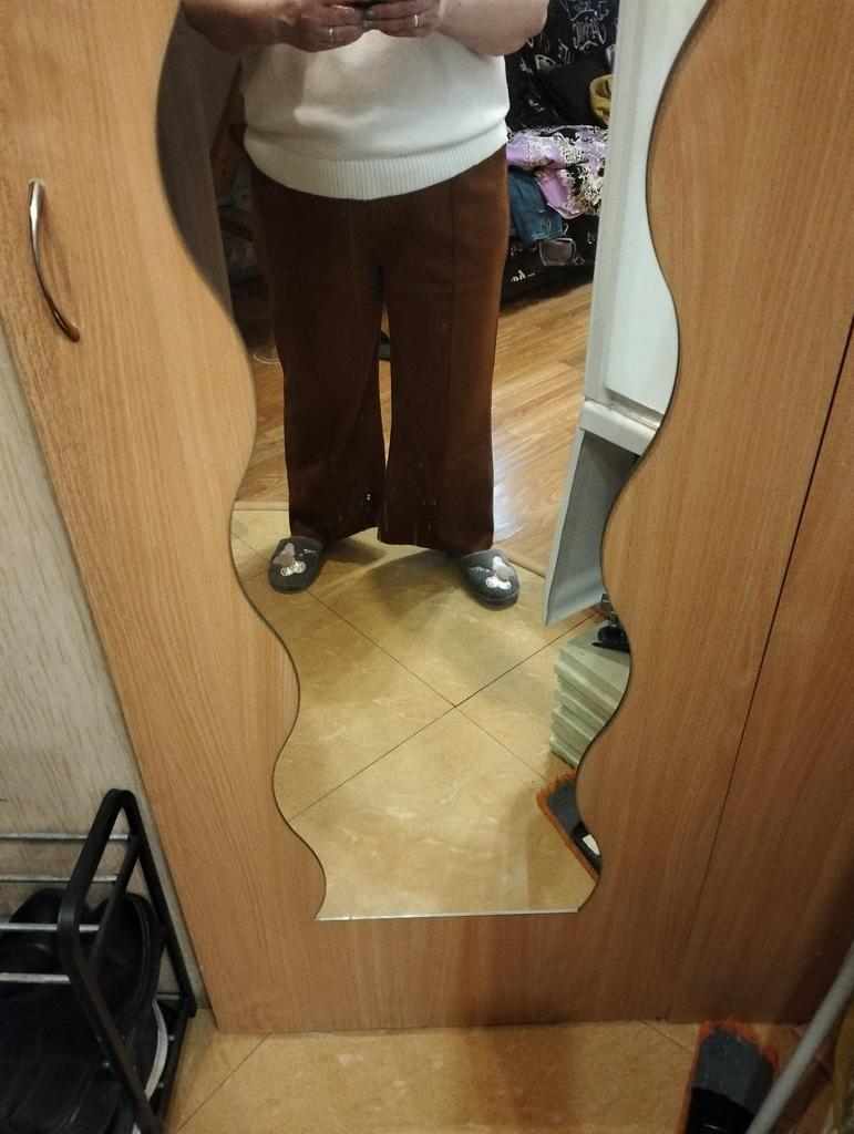Брюки очень понравились, ткань плотная, мягкая, гладкая, приятная к телу. У меня рост 158 см, в самый раз, не надо подшивать, обрезать, тем, у кого рост выше - будут короткие, ну тут на любителя. Брюки тёплые, на зиму, осень то, что надо.Правда есть нюанс, к низу брючины немного расширены, смотрятся комично, как у клоуна, можно конечно попробовать ушить, опять же, кому как нравится. Рекомендую продавца 👍