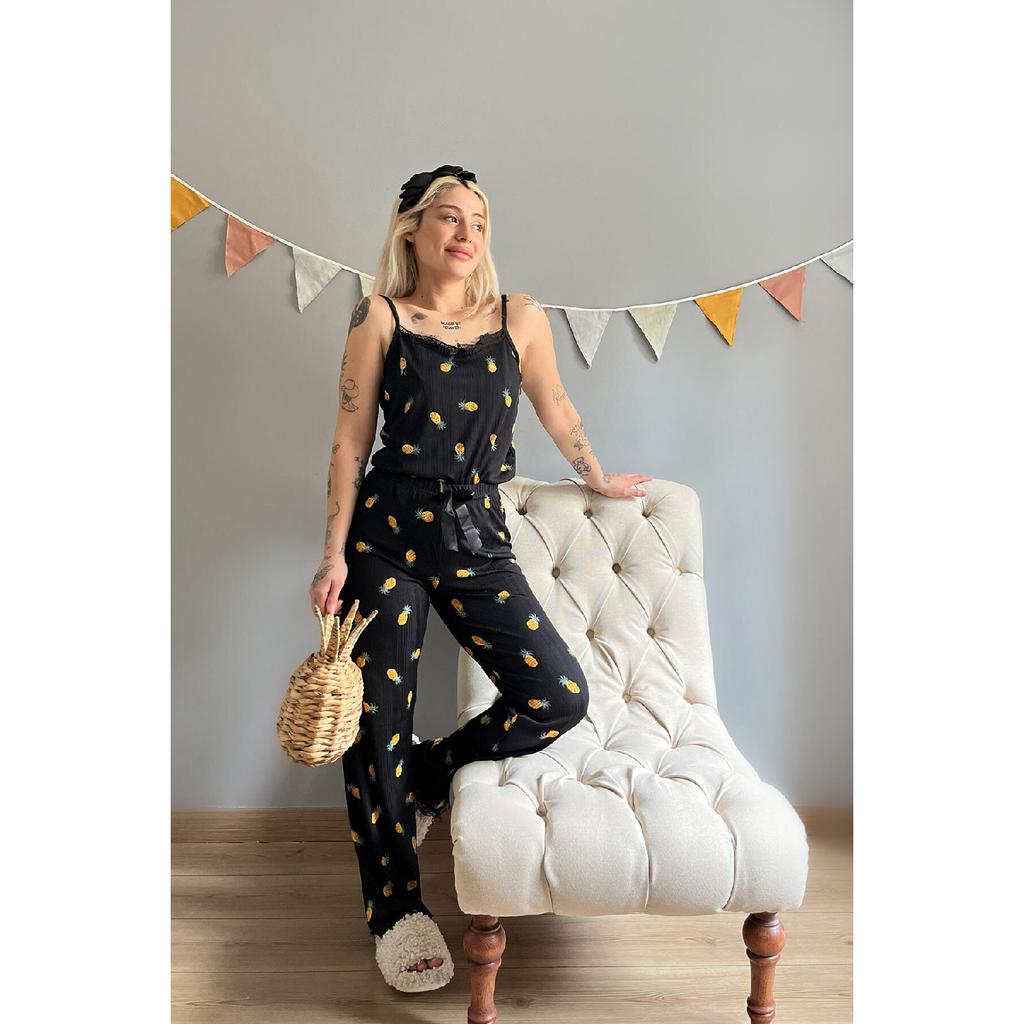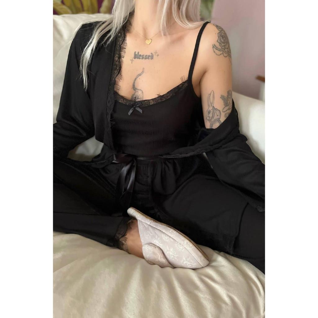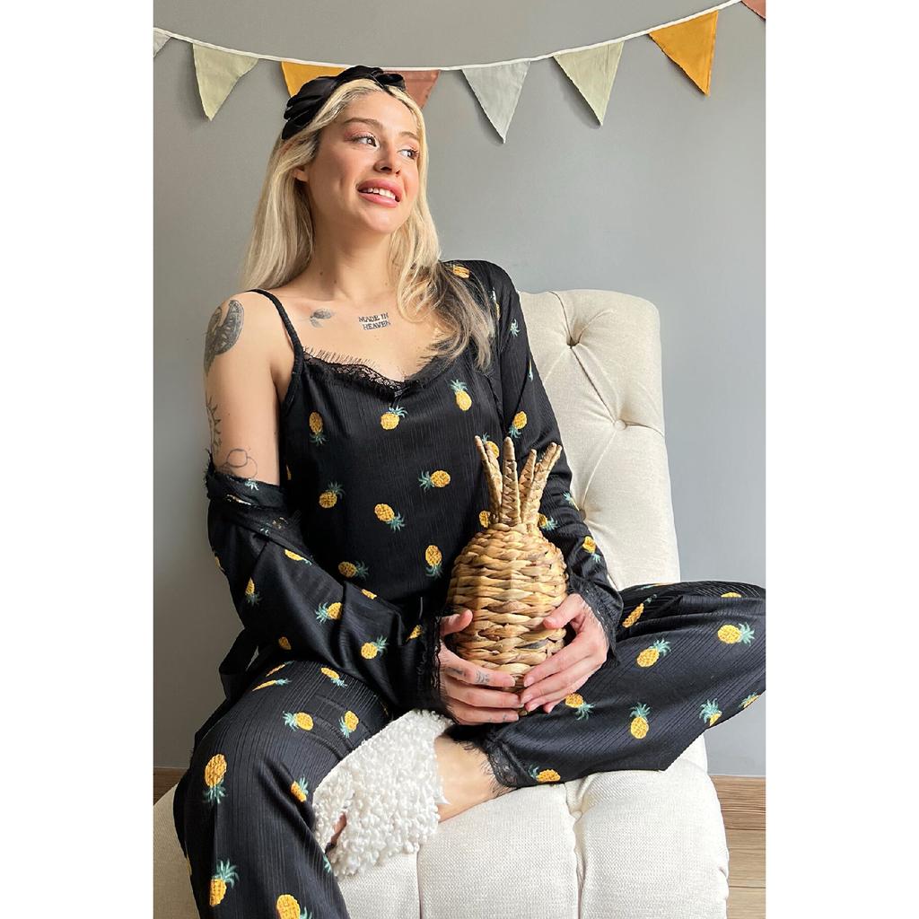 Темно-черный пижамный комплект Pegasus с узором и халатом