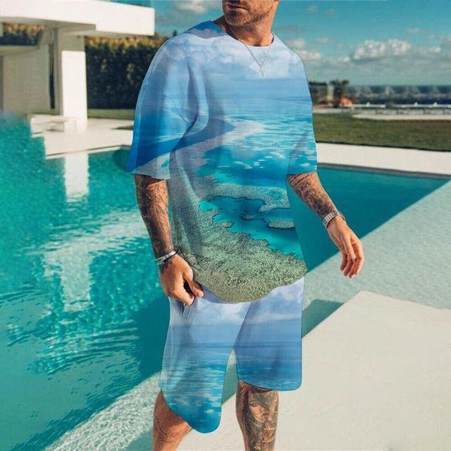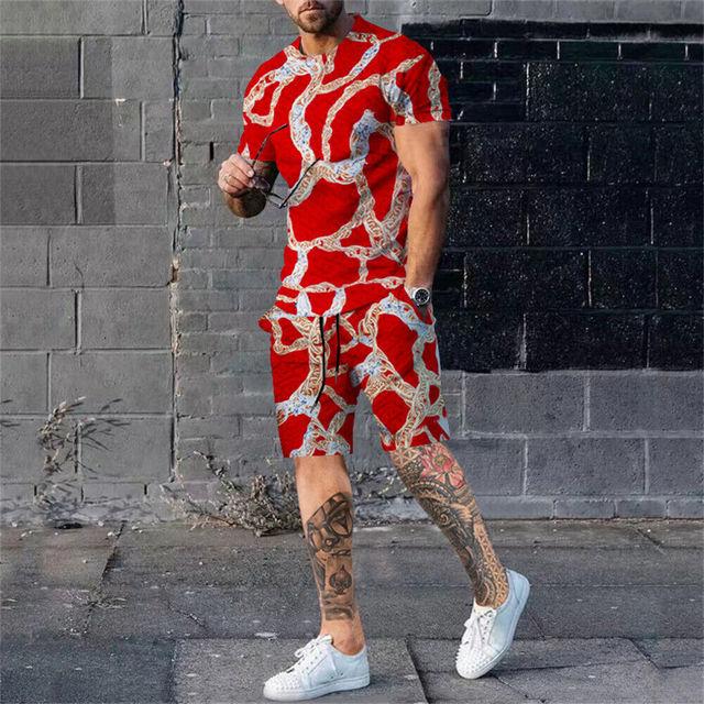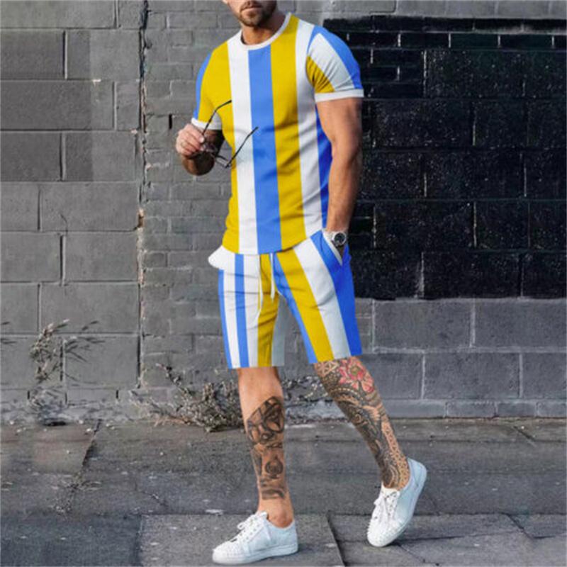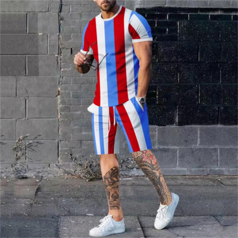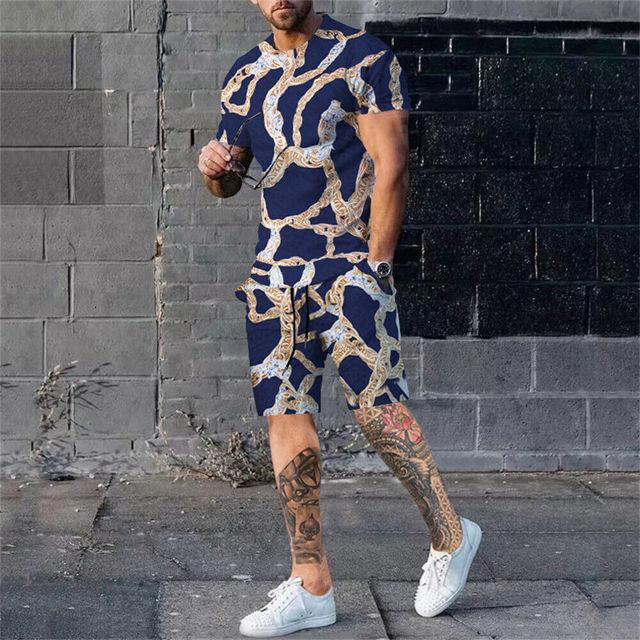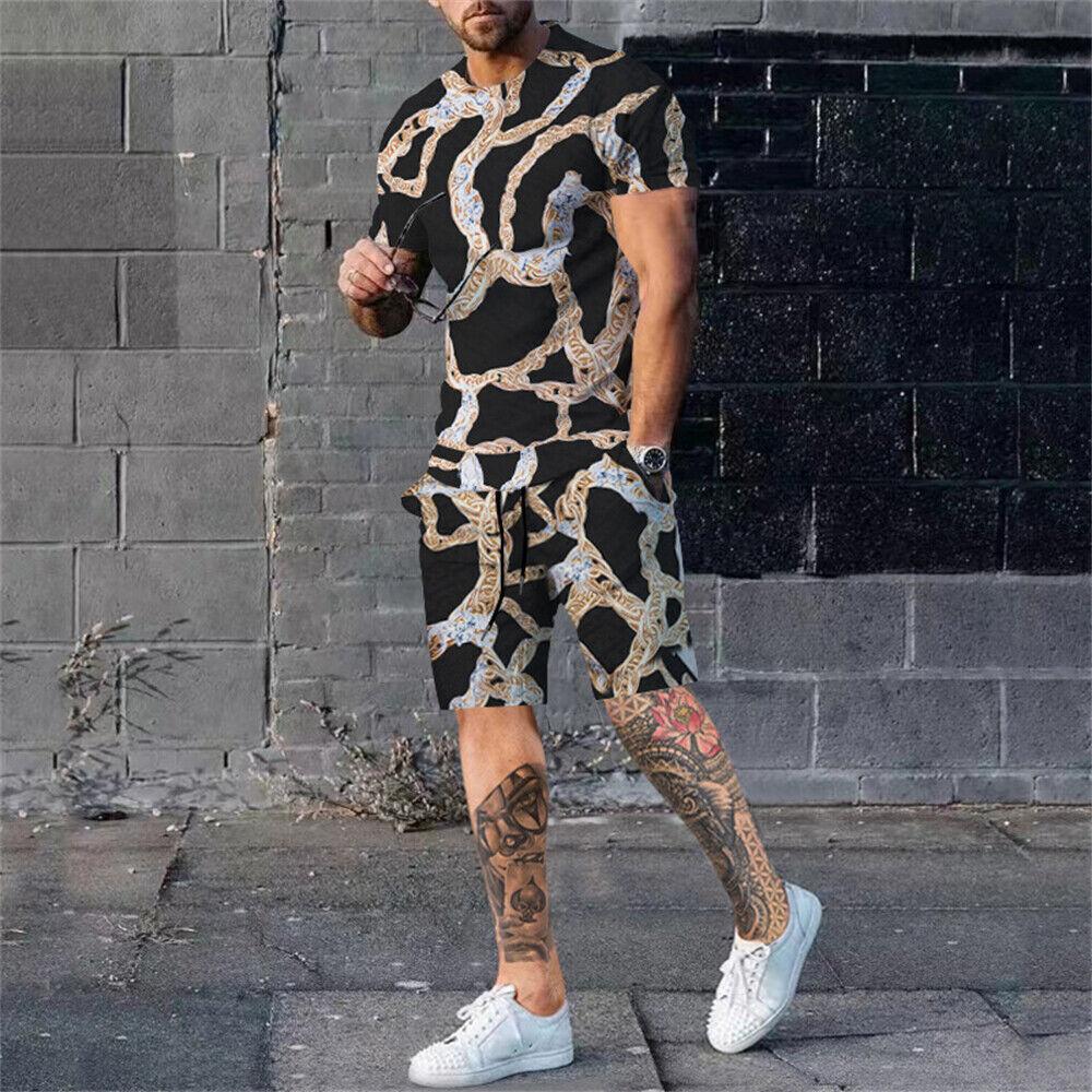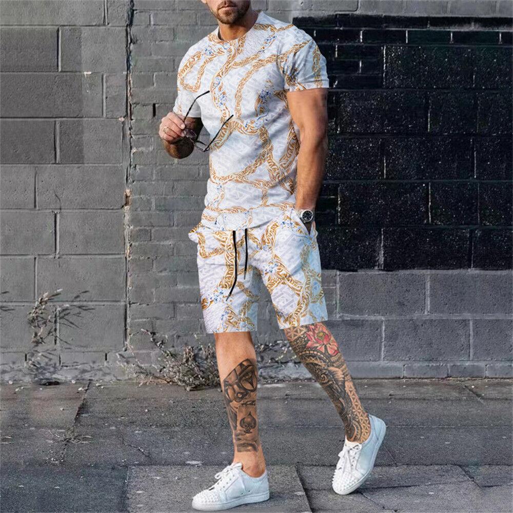 Новый летний комплект мужских футболок с 3d принтом, повседневный модный роскошный стиль, полный комплект одежды, уличная одежда, шорты на шнурке