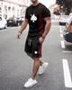 Европейский и американский мужской комплект футболок, летние шорты с 3D принтом и буквами для игральных карт, комбинированный комплект из 2 предметов с короткими рукавами, повседневный