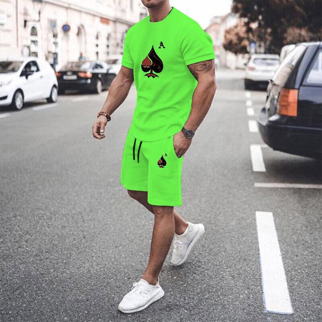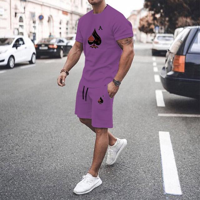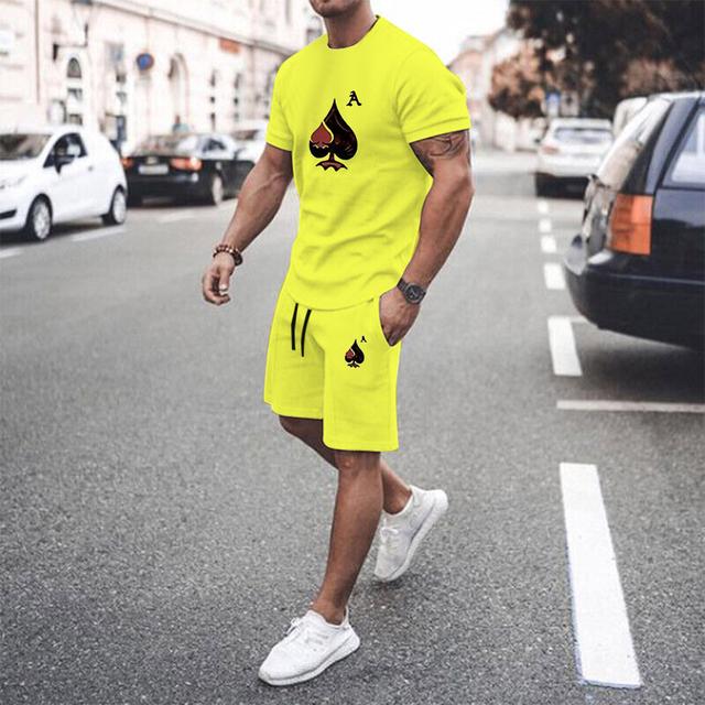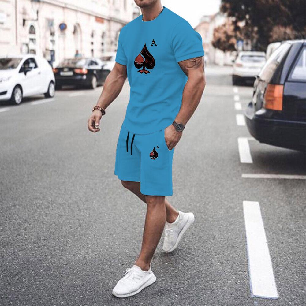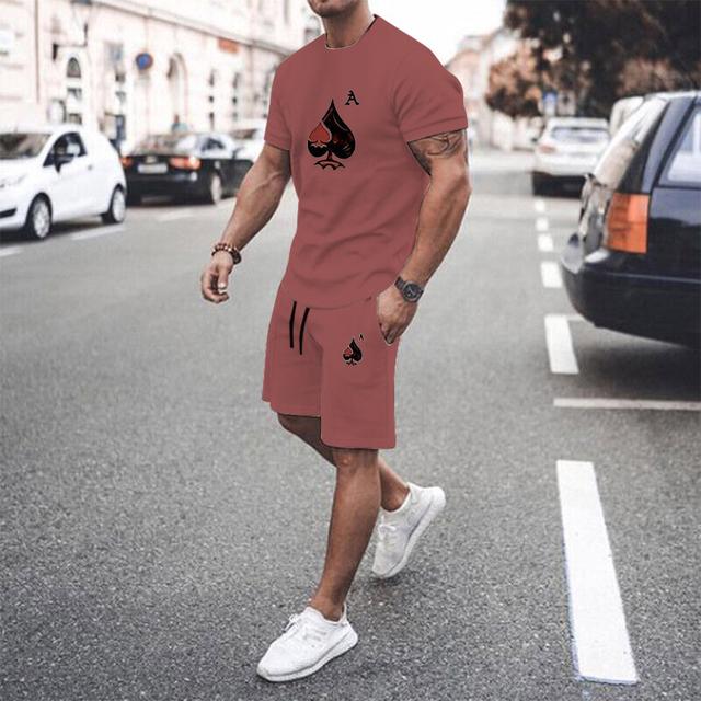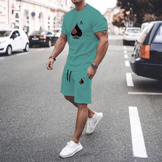 Новые мужские шорты и футболка, комплект с короткими рукавами, графический принт, покер с круглым вырезом, белая уличная одежда с 3D принтом, 2 шт.