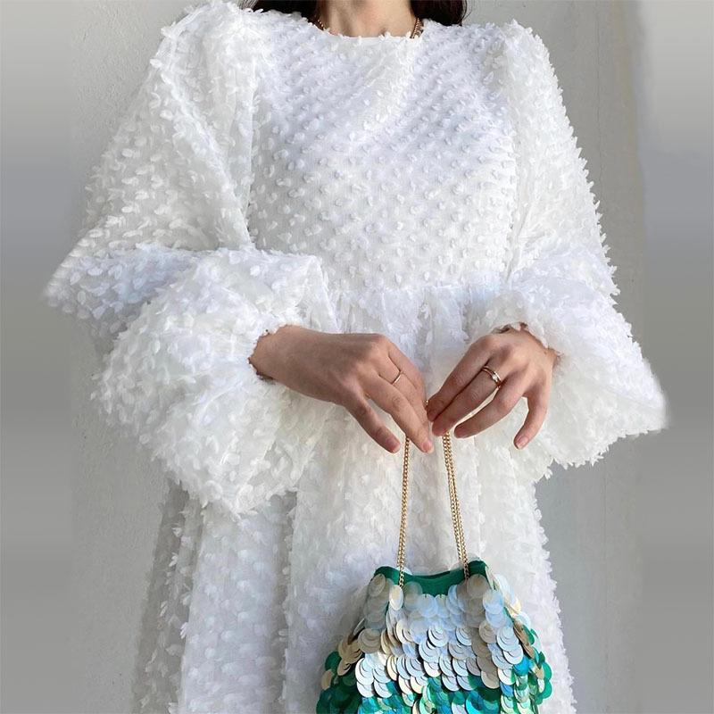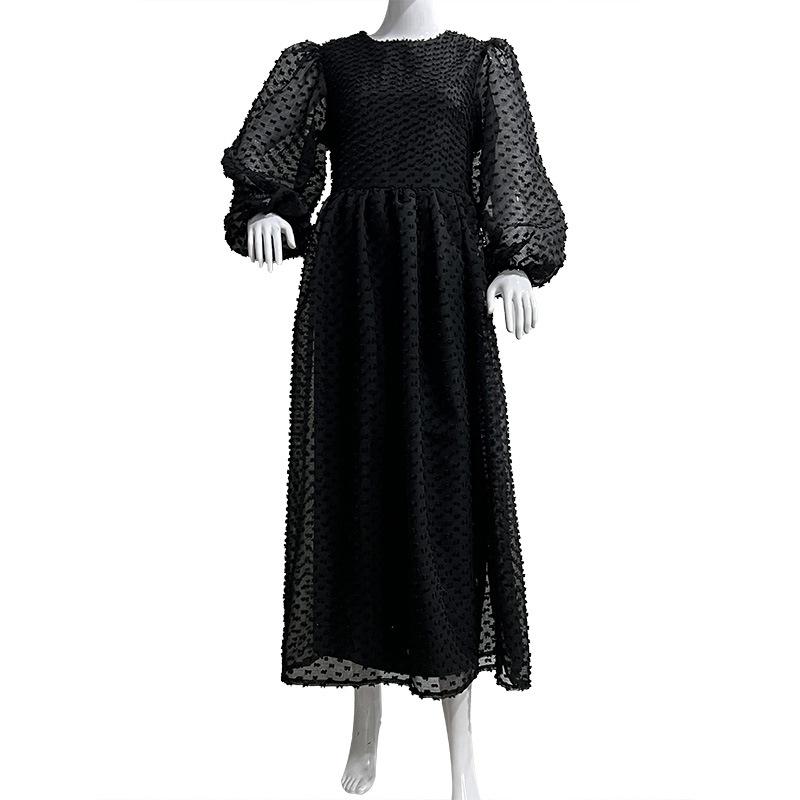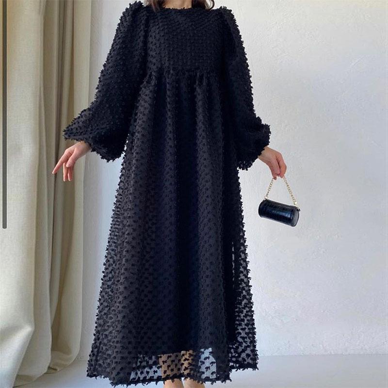 Модное женское однотонное платье с круглым вырезом и рукавами-фонариками, элегантное длинное платье для женщин