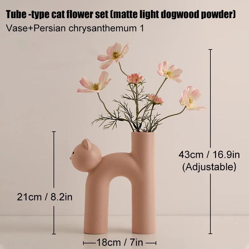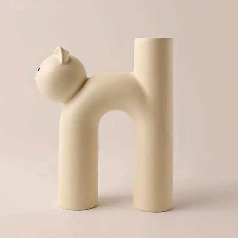 Керамическая ваза с мультяшным котом, милая трубчатая эстетичная ваза с котом, матовая U-образная форма, цветочный горшок с котом, кашпо, украшения для гостиной, домашний декор