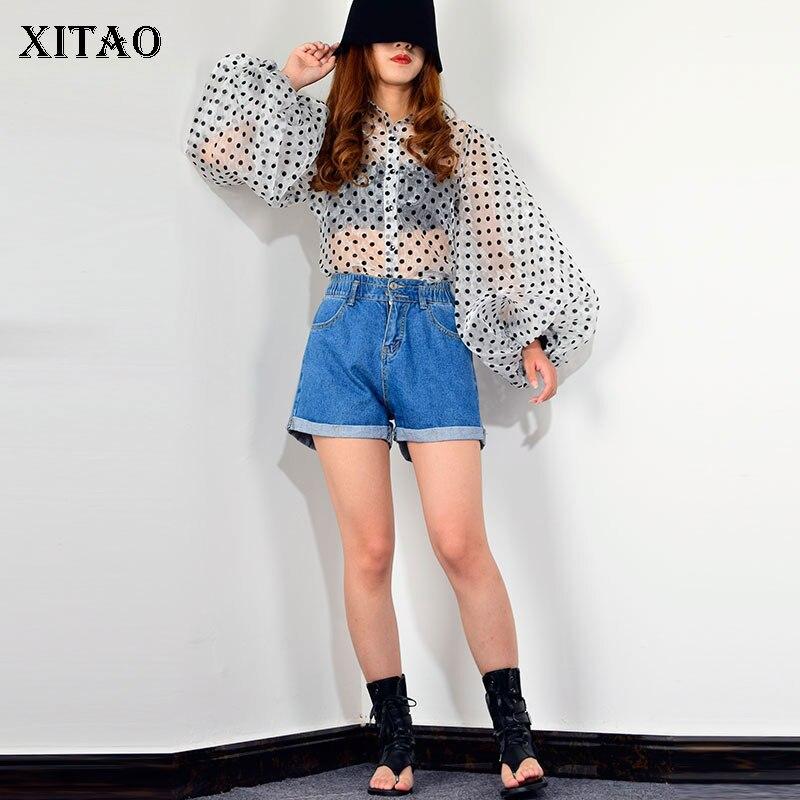 XITAO Однобортная блузка с принтом в горошек WQR2020 — купить товар онлайн с бесплатной доставкой по всему миру!