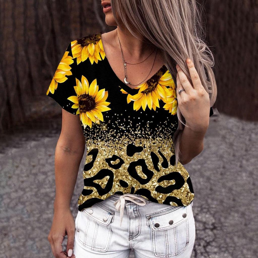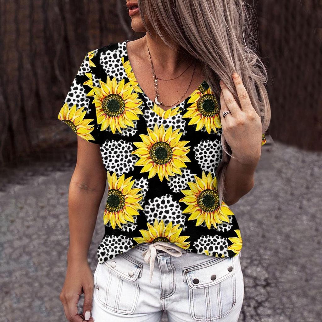 Летняя женская футболка с короткими рукавами и подсолнухом, модная женская одежда в стиле Харадзюку, уличная футболка Y2k для дам, топ